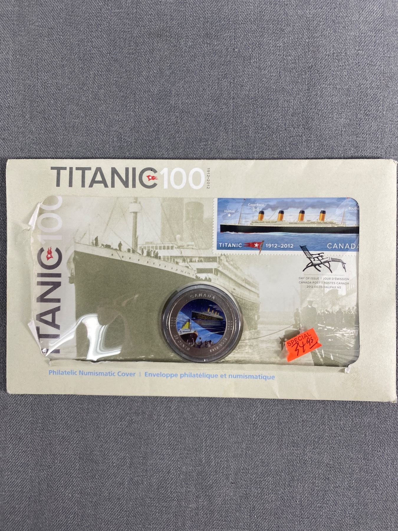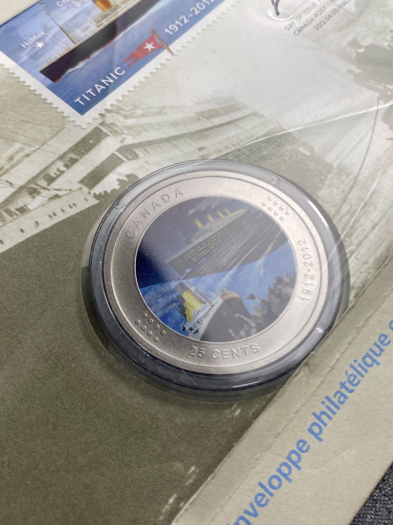 1912-2012 Titanic 100 Canada Post Stamp w/ RCM Coloured Quarter