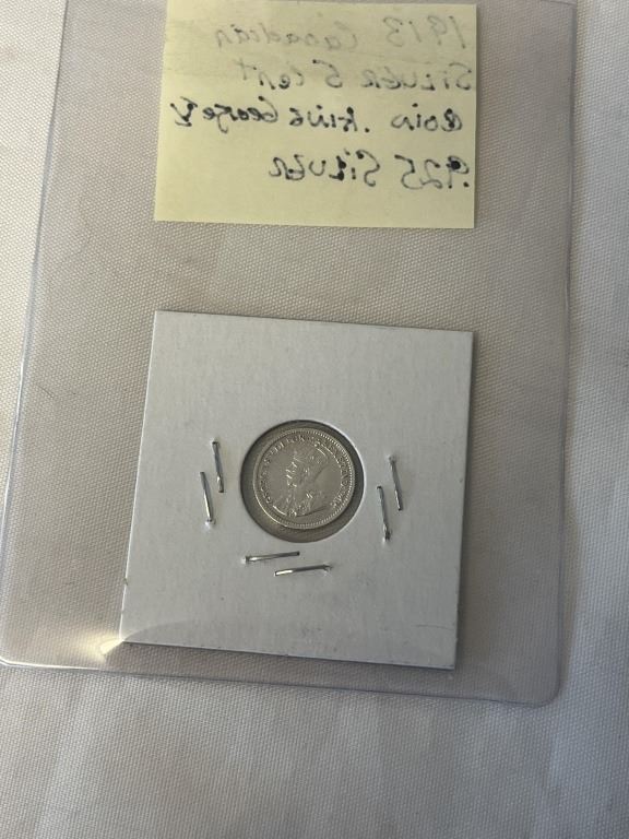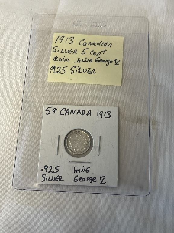 1913 CANADIAN SILVER 5 CENT COIN KIG GEORGE V .925