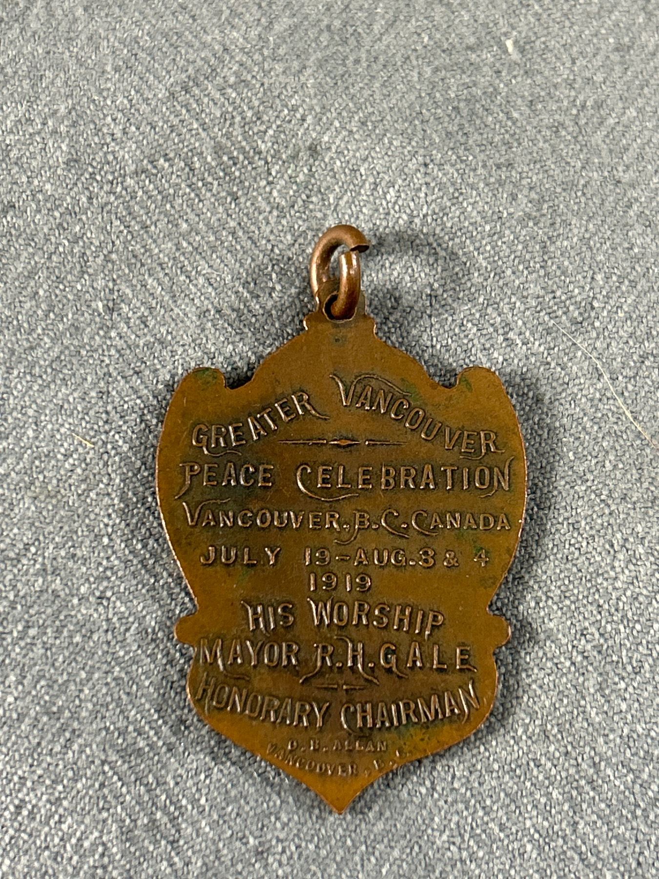 1913 Greater Vancouver Peace Celebration w/ Mayor RH Gale 1.5"H Pendant