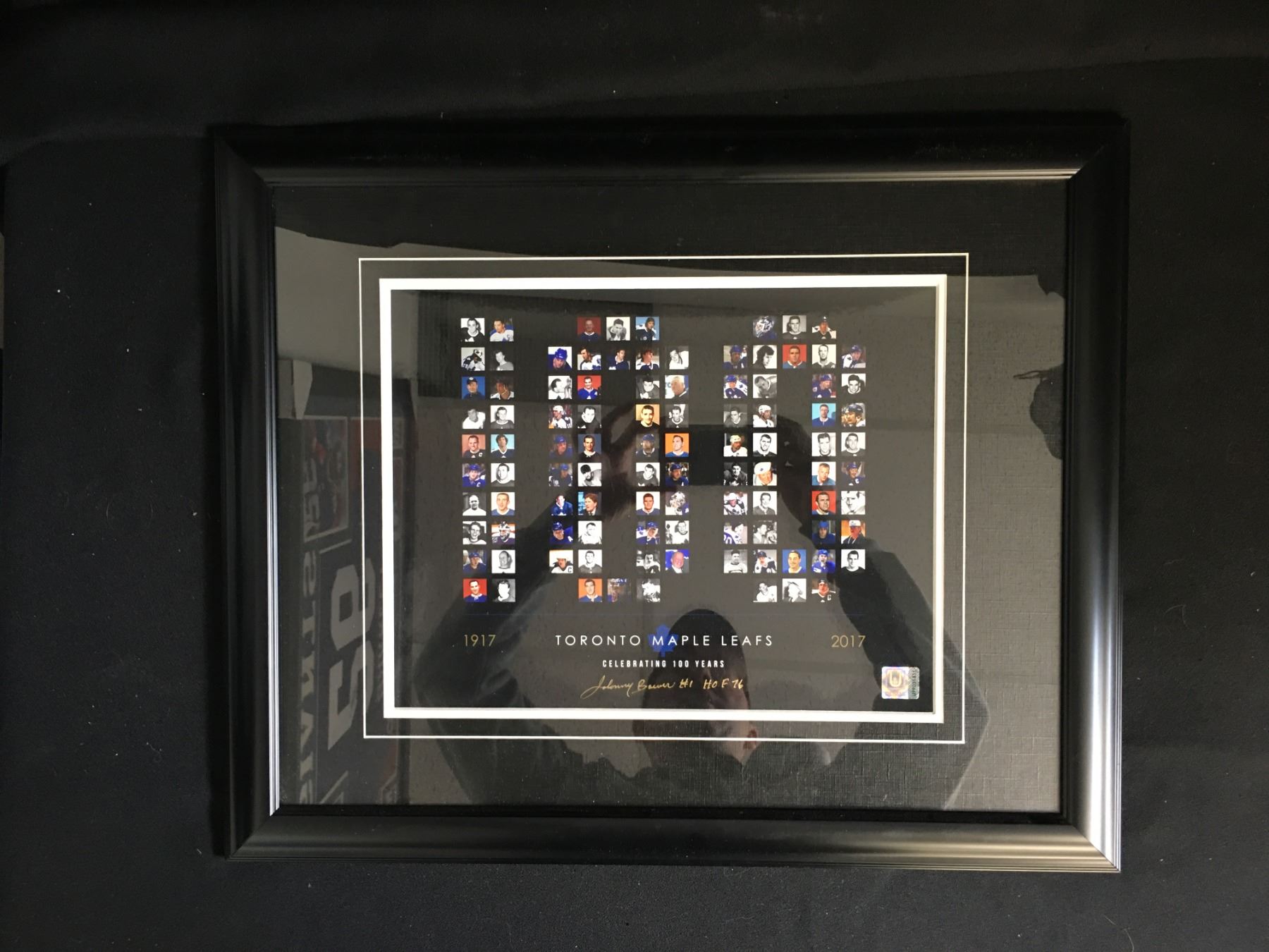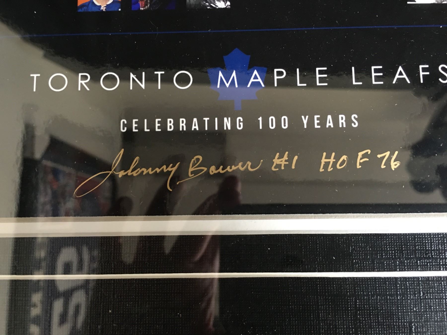 1917-2017 TORONTO MAPLE LEAFS 100 YEAR CELEBRATION PHOTO SIGNED BY JOHNNY BOWER (UNIVERSAL COA)