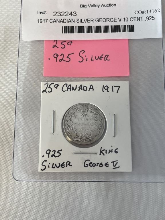 1917 CANADIAN SILVER GEORGE V 10 CENT .925 SILVER