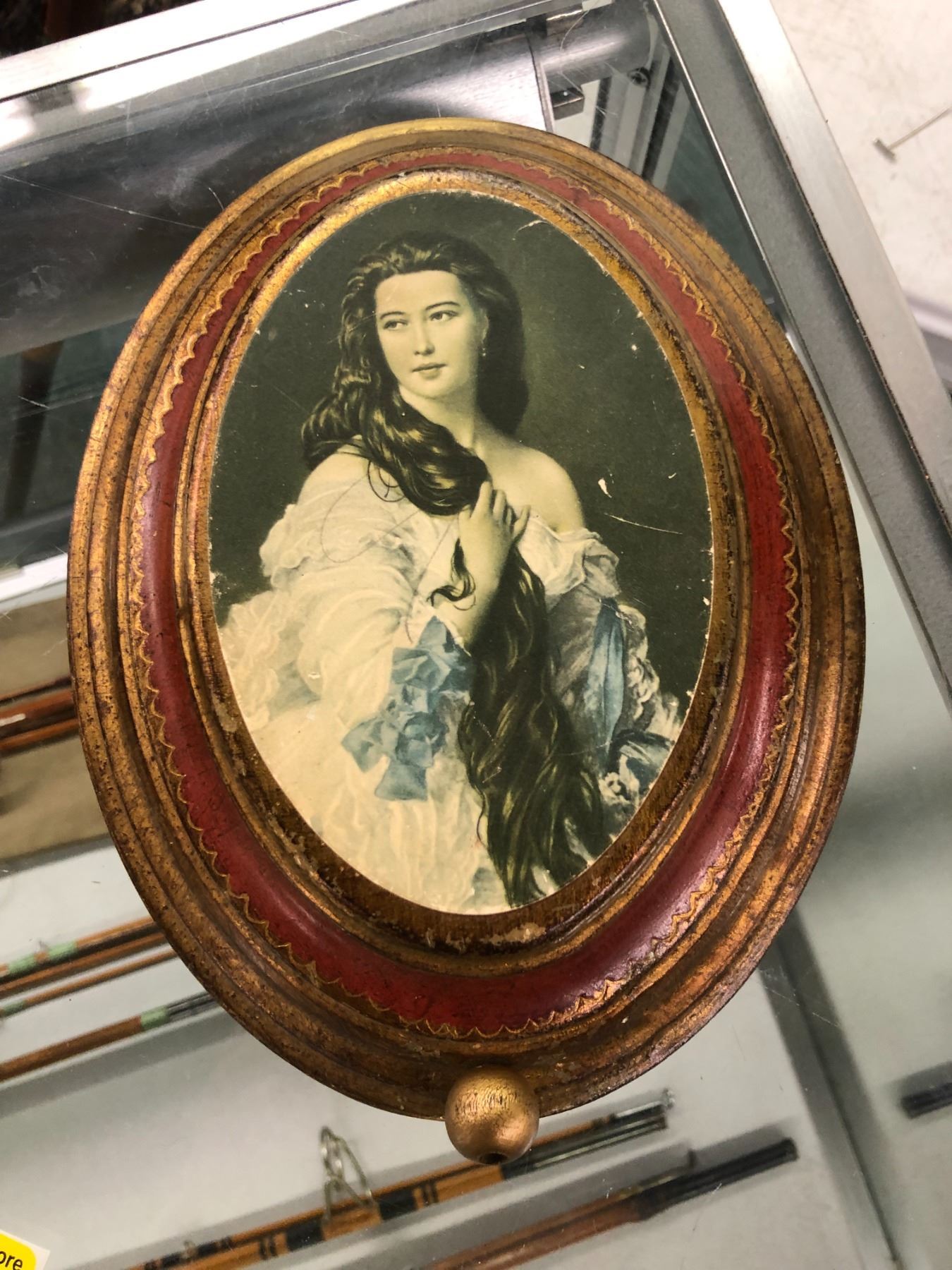 1920's - 1940's musical portrait picture holders - pulling the string down winds the music box, often people put portrait on it to hang on the wall