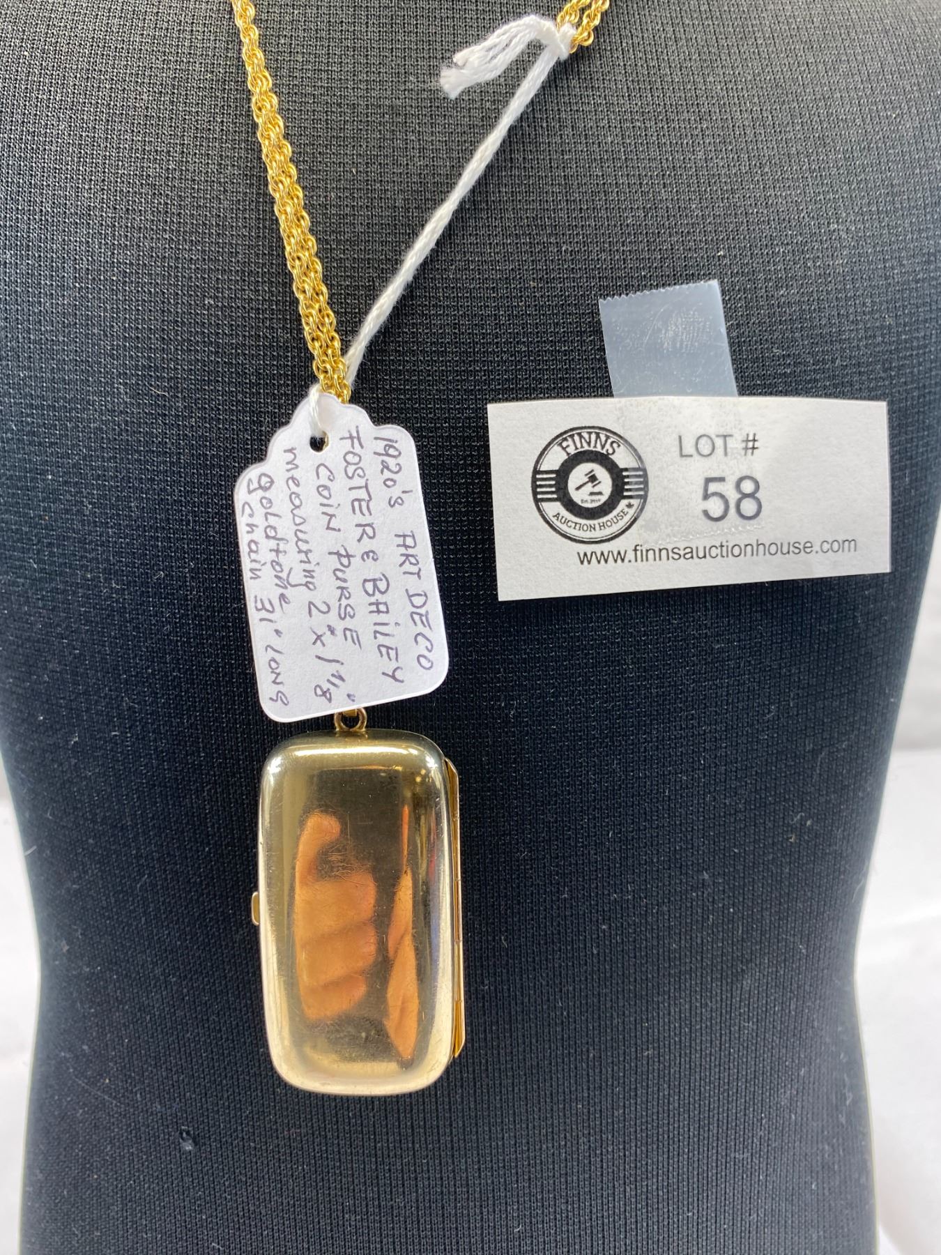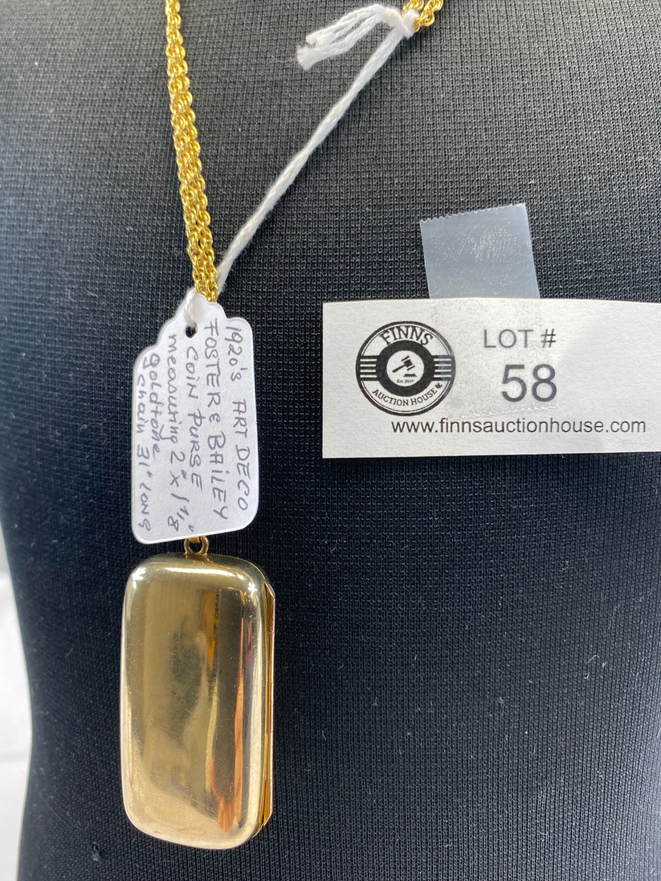 1920's Art Deco Foster And Bailey Coin Purse With Gold Tone Chain