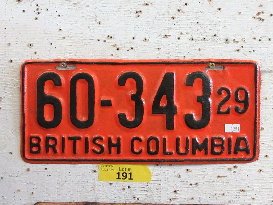 1929 BC License Plate - Single Plate