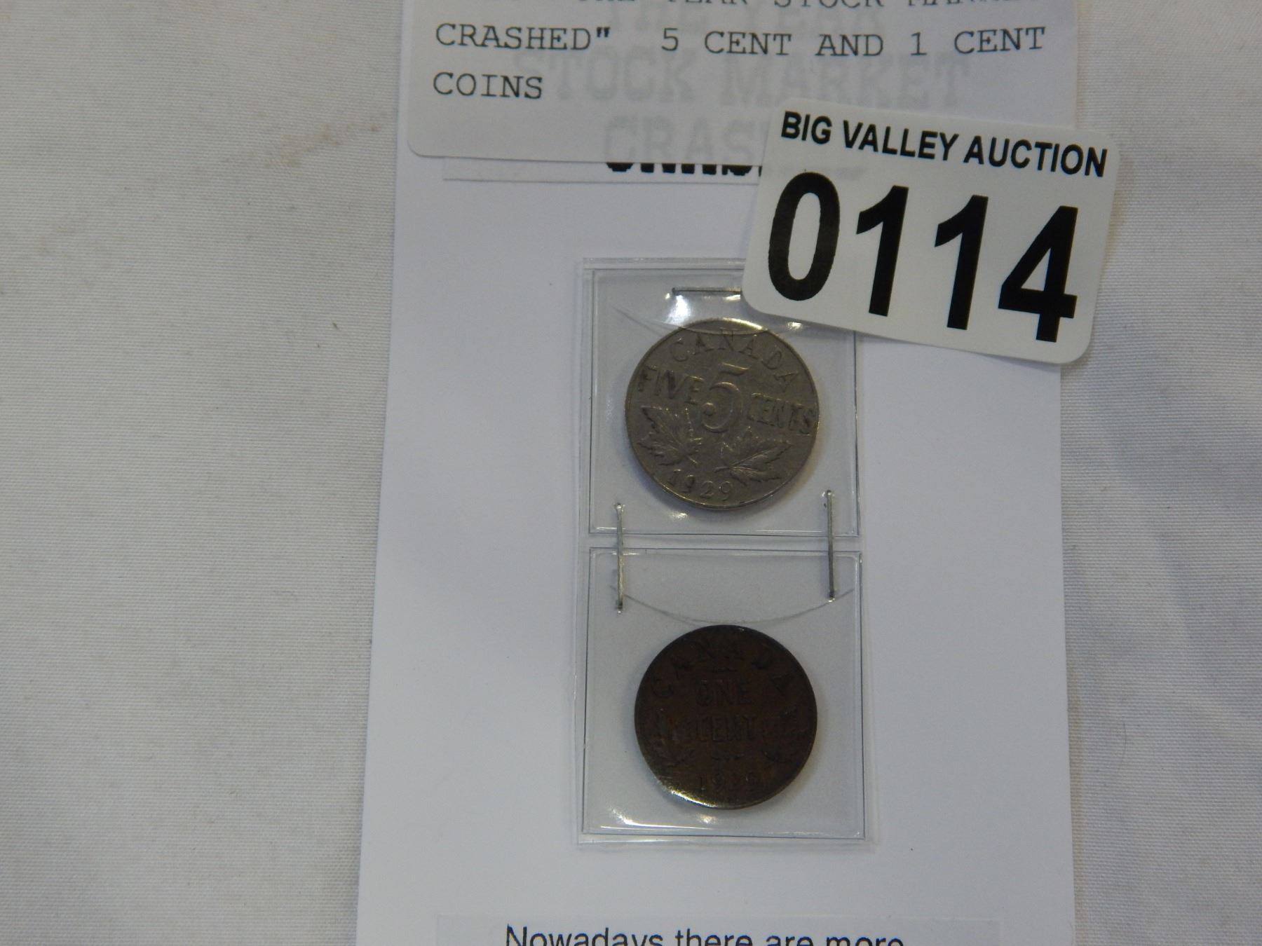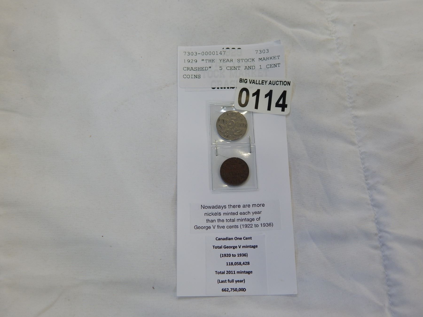 1929 "THE YEAR STOCK MARKET CRASHED" 5 CENT AND 1 CENT COINS