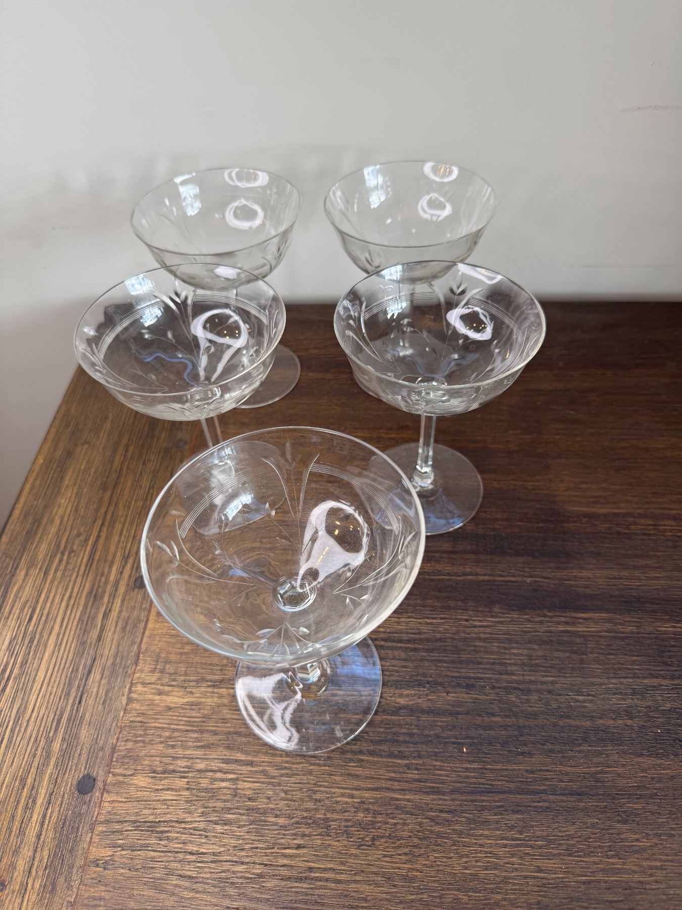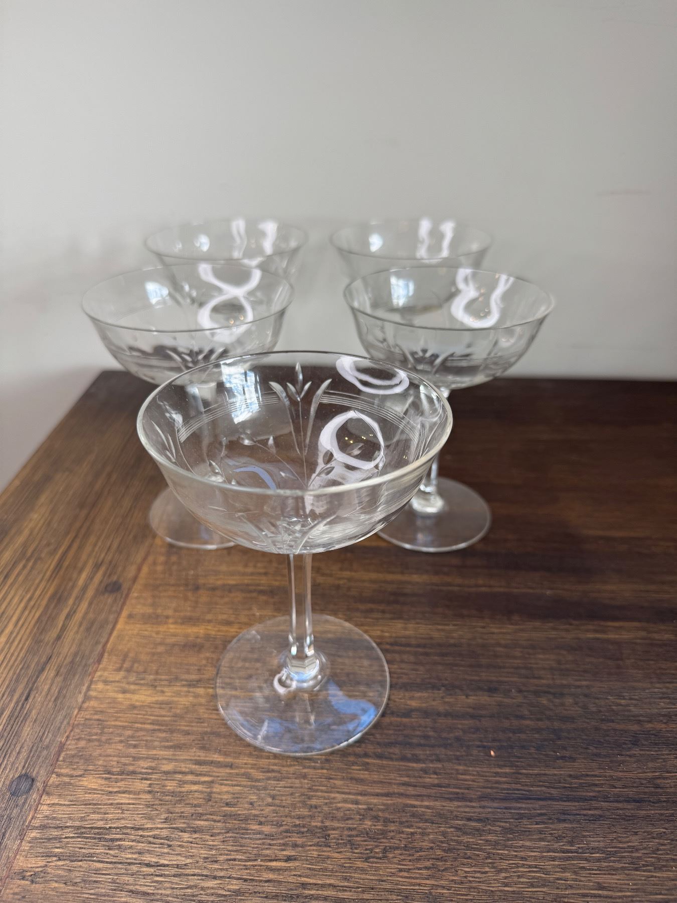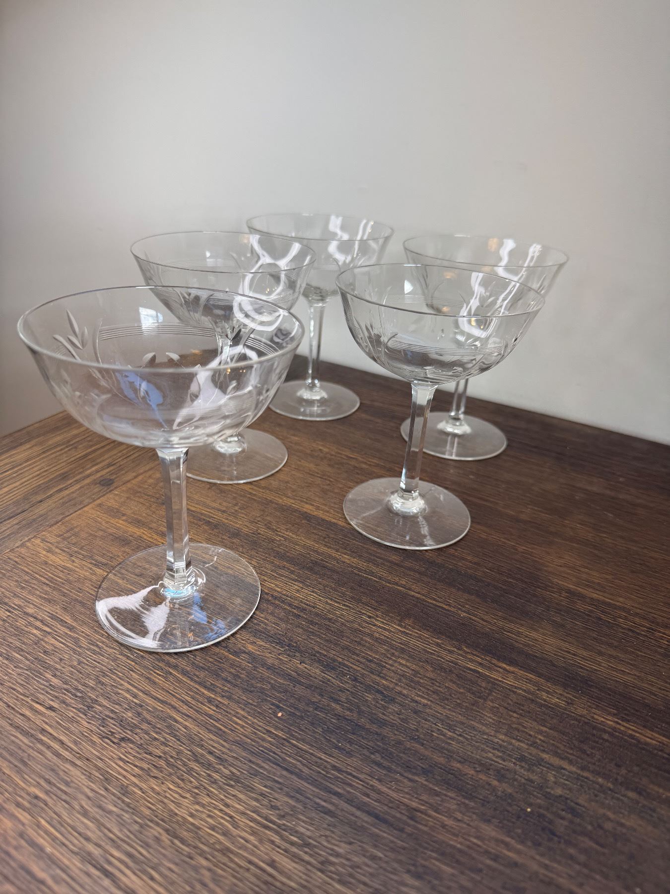 1930' hand etched champagne glasses