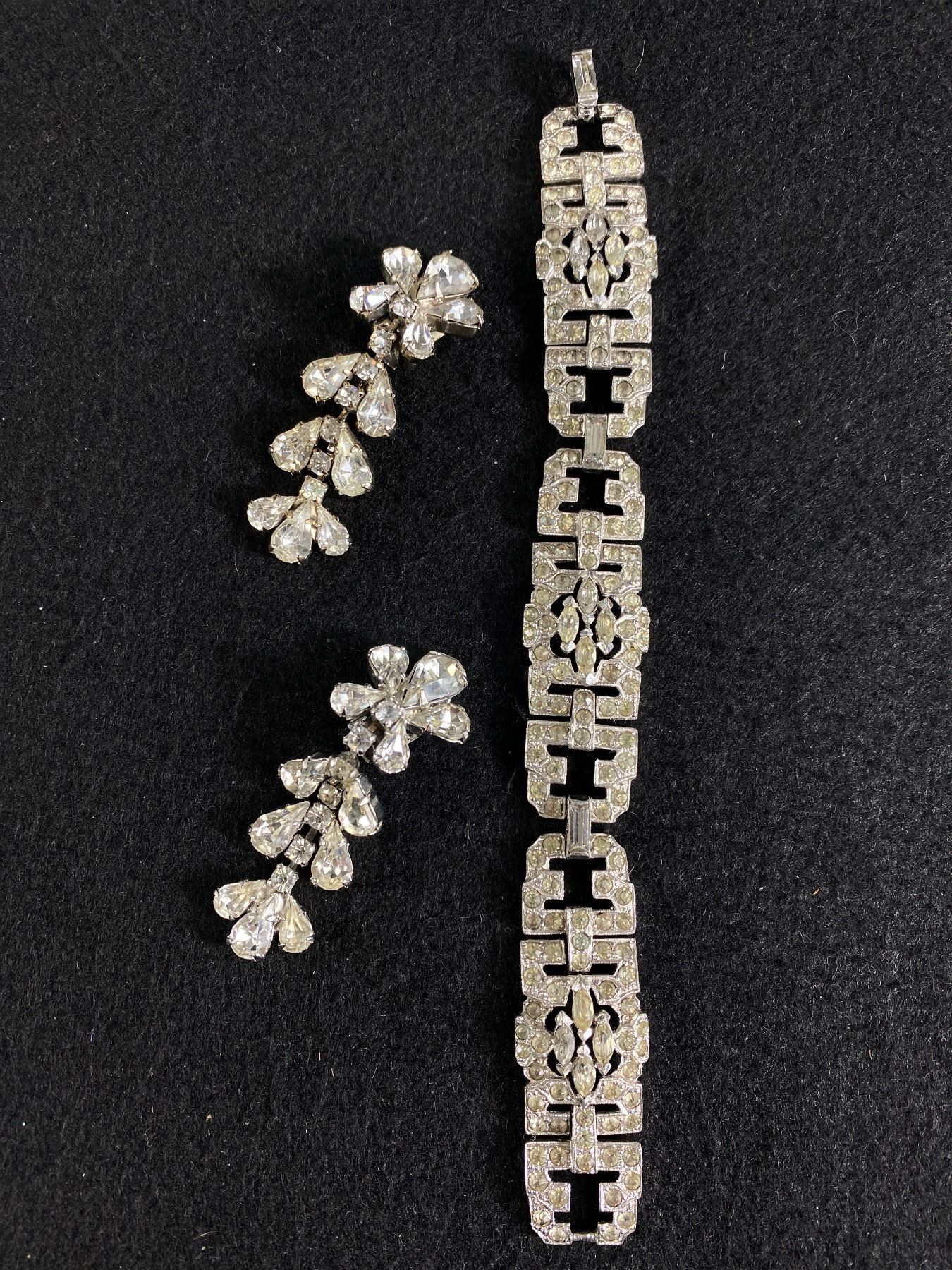 1930's Art Deco Rhinestone Bracelet & Rhinestone Earrings