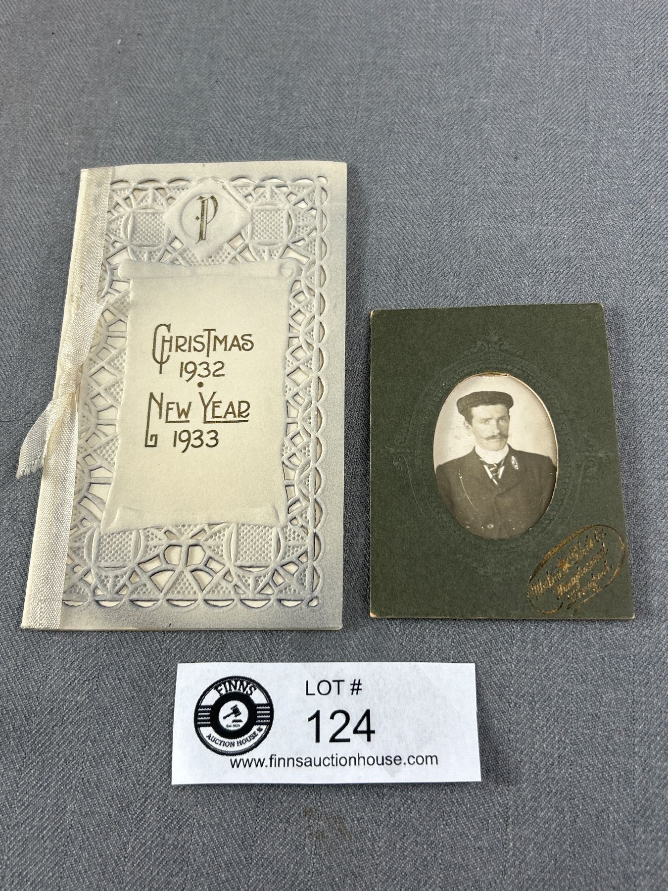 1932 Christmas/1933 New Year Card (Made In England) & Small Antique Photo