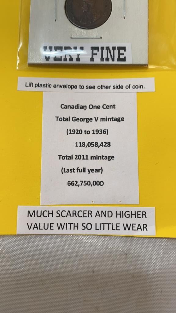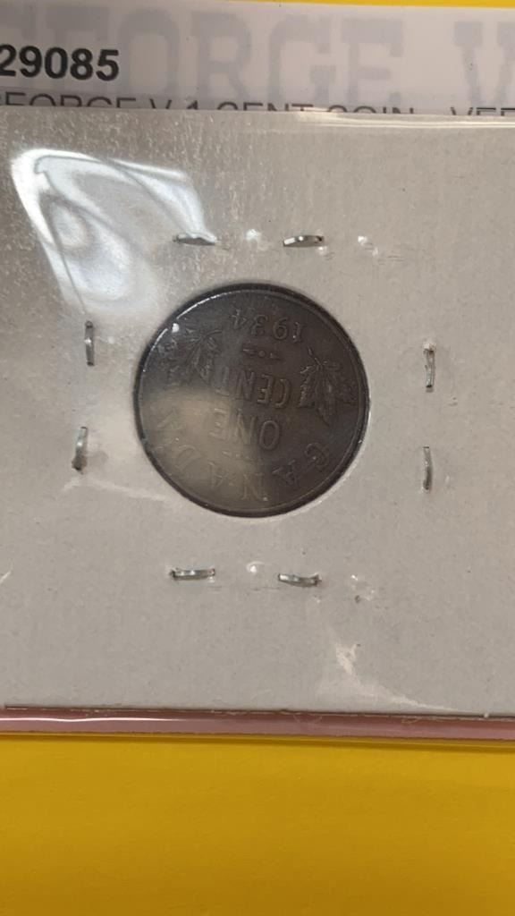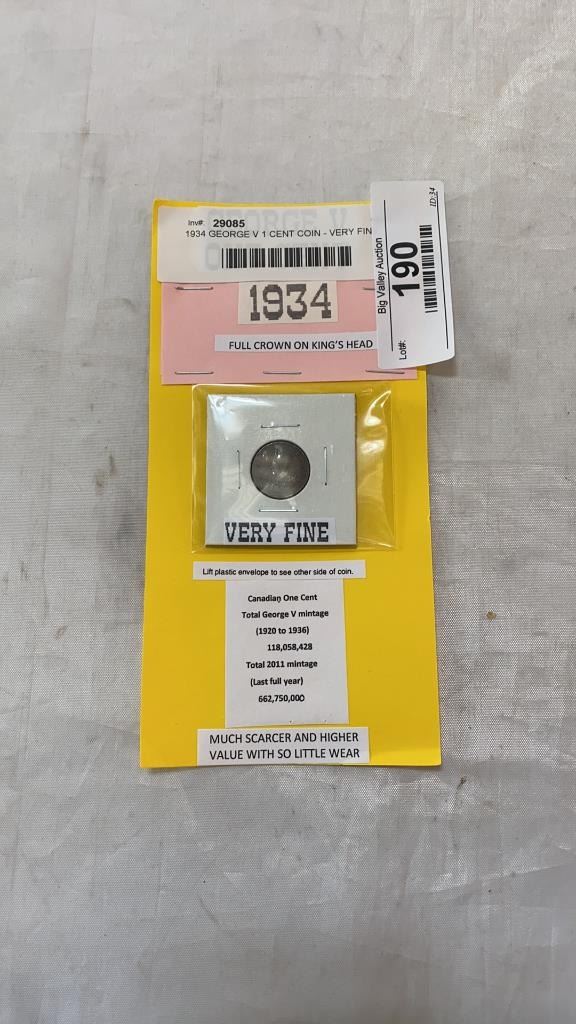 1934 GEORGE V 1 CENT COIN - VERY FINE CONDITION