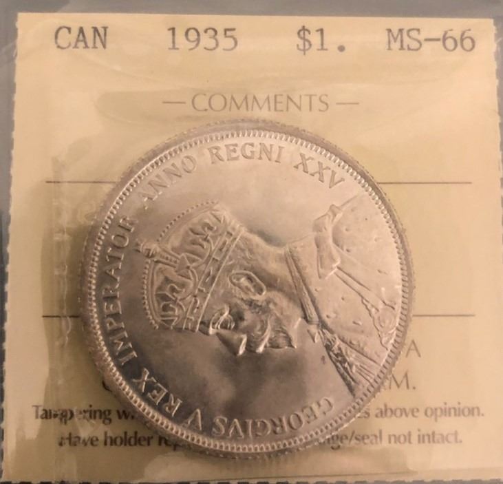 1935 King George V Canadian Silver Dollar ICCS-MS-66 Blast White