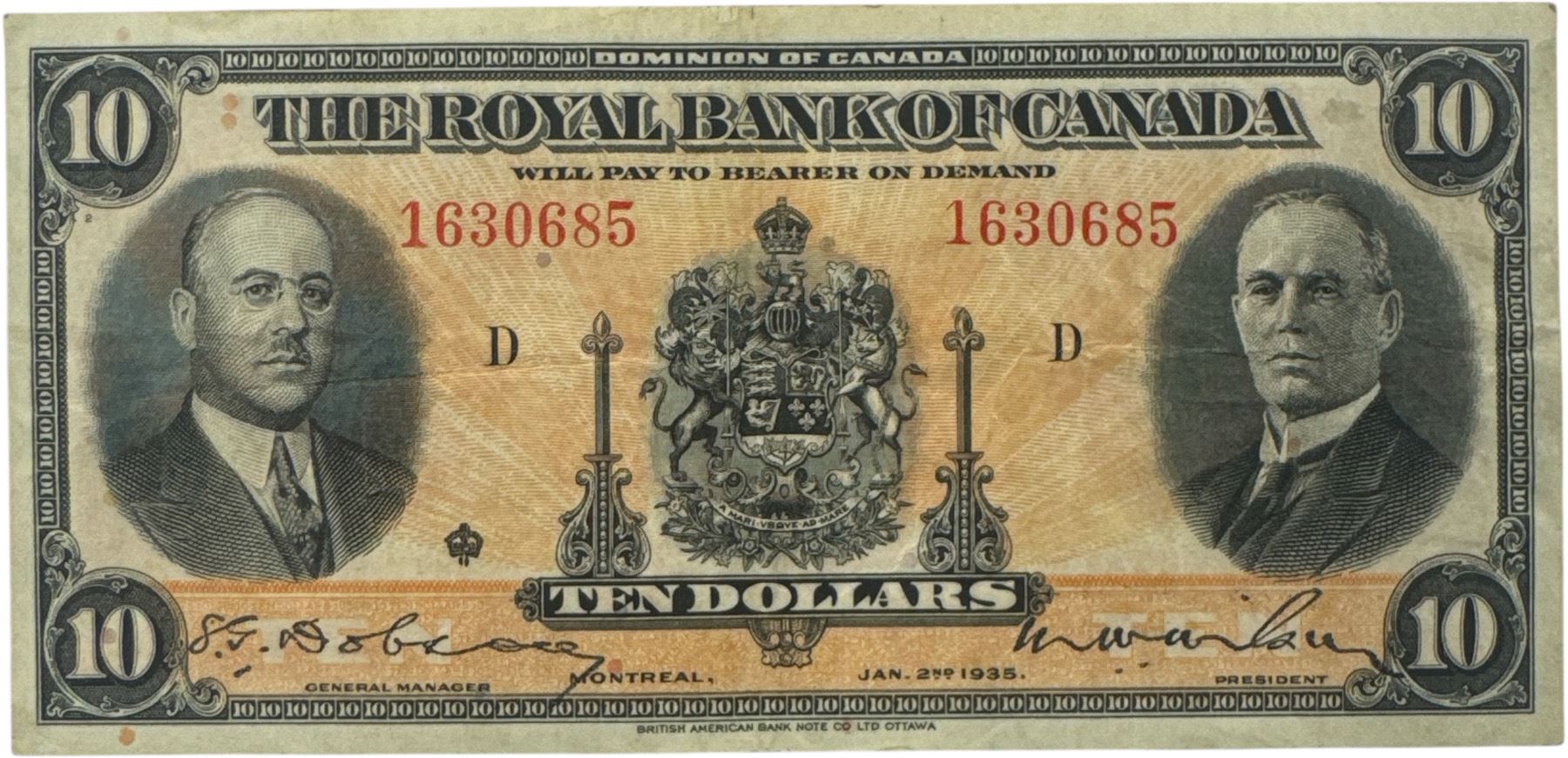 1935 Royal Bank of Canada 10 Dollar Bank Note