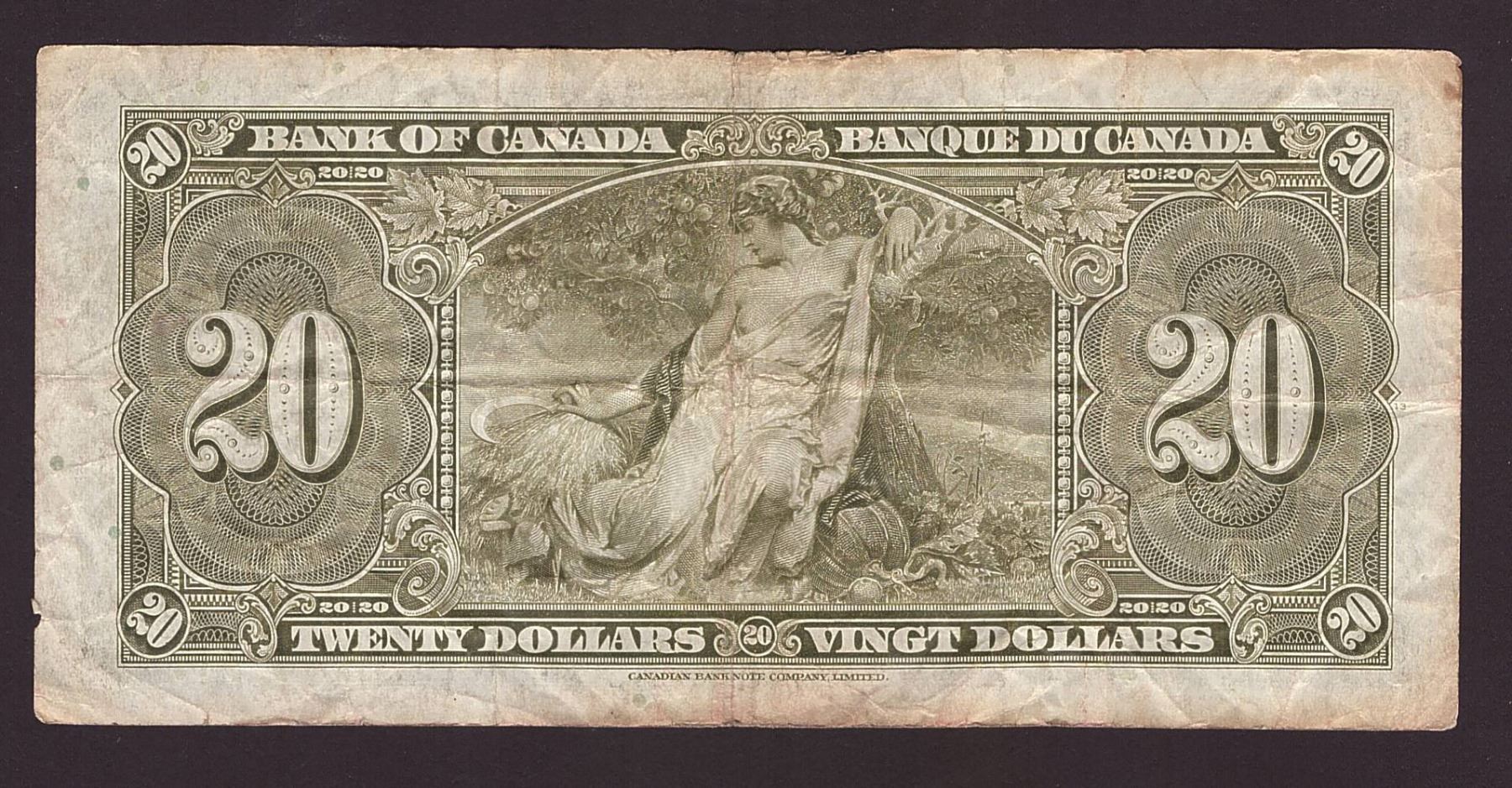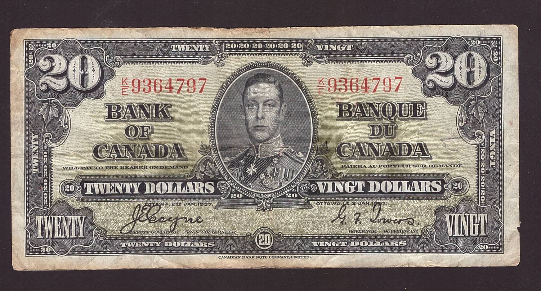 Original 1937 Canada Twenty Dollar Banknote paper money