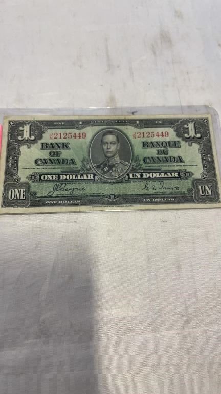 1937 CANADIAN $1 BILL KING GEORGE VI COYNE/TOWERS