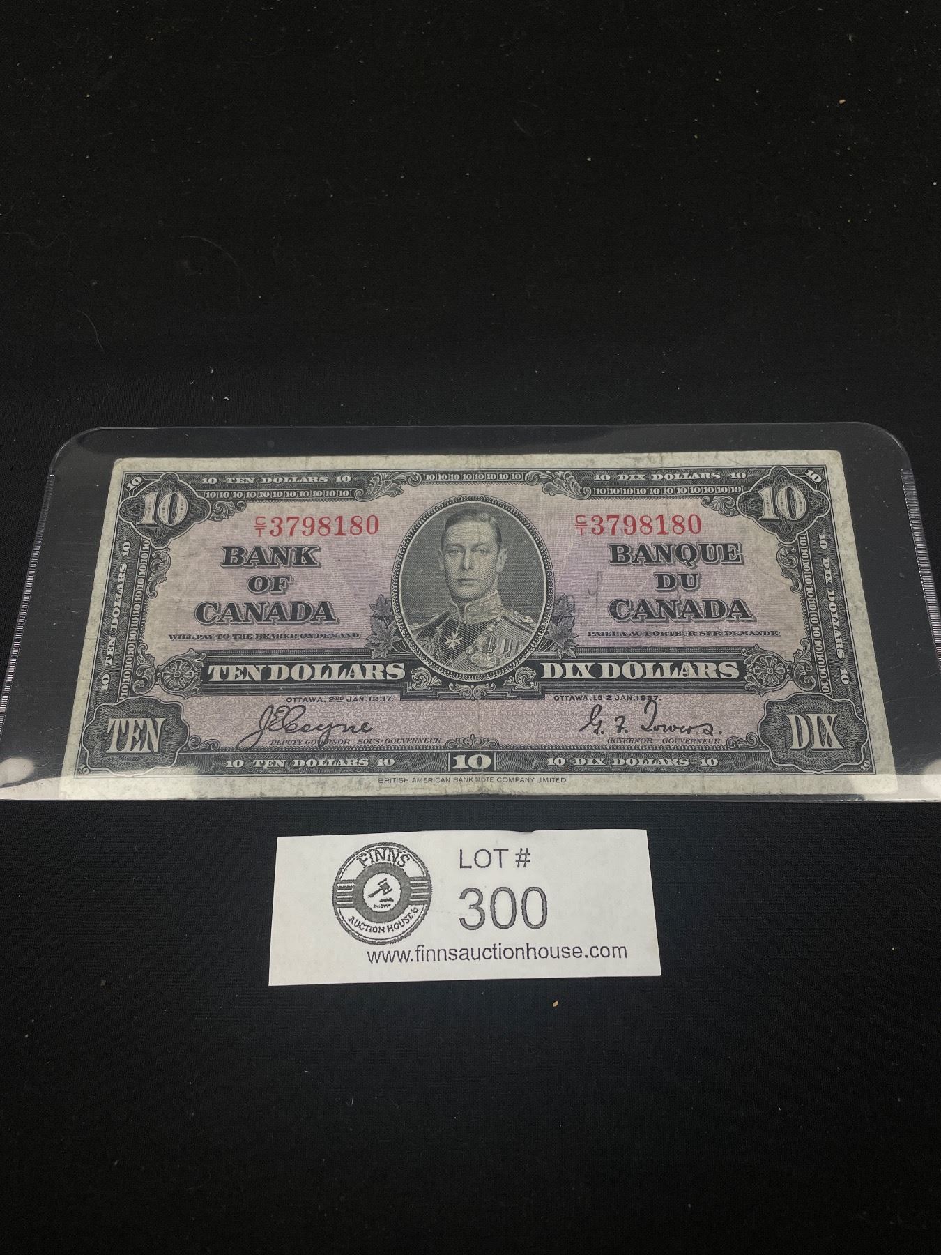 1937 KG $10 Canadian Bill - Excellent Circulated Condition CT Signatures