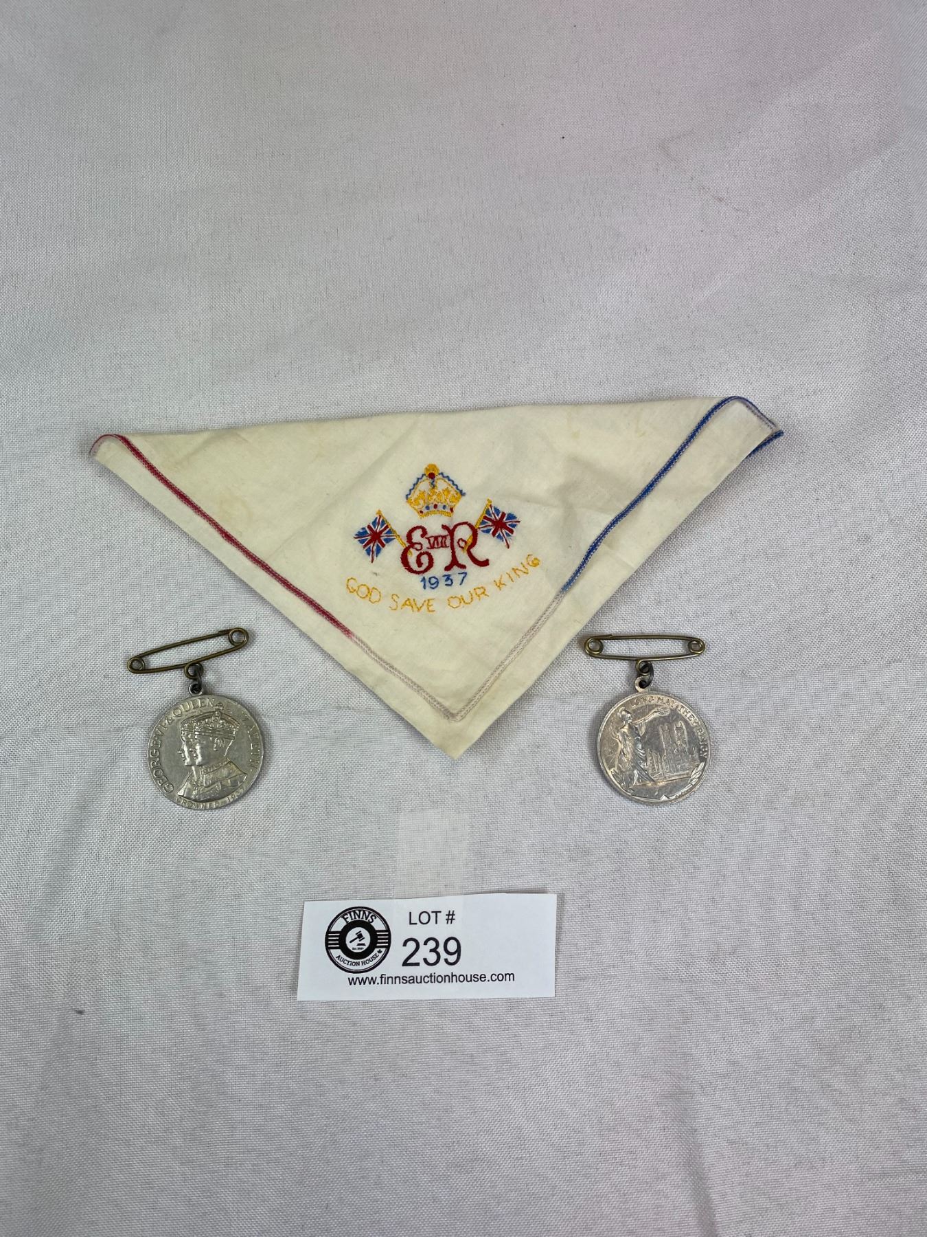1937 Royal Coronation King George and Elizabeth Medal and Hankie Lot