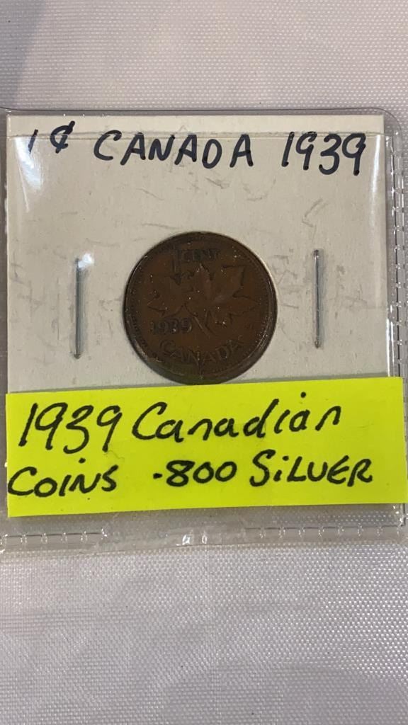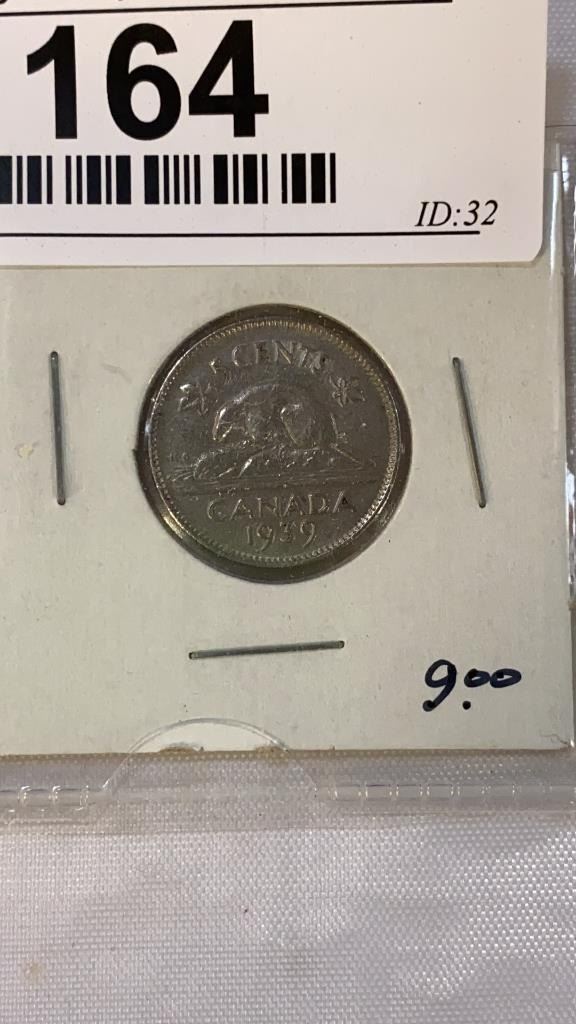1939 CANADIAN COINS .800 SILVER 25 CENT AND 10 CENT