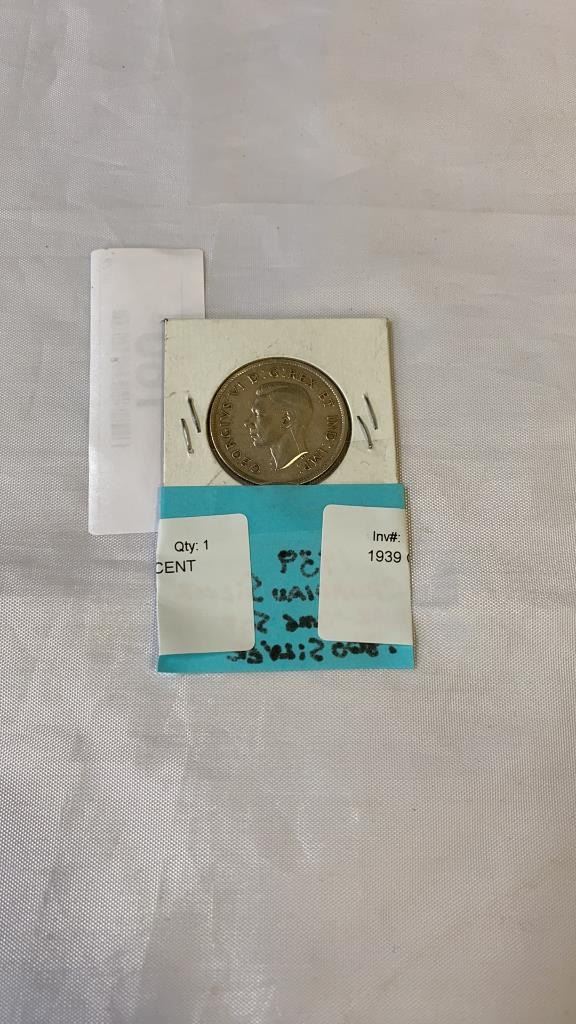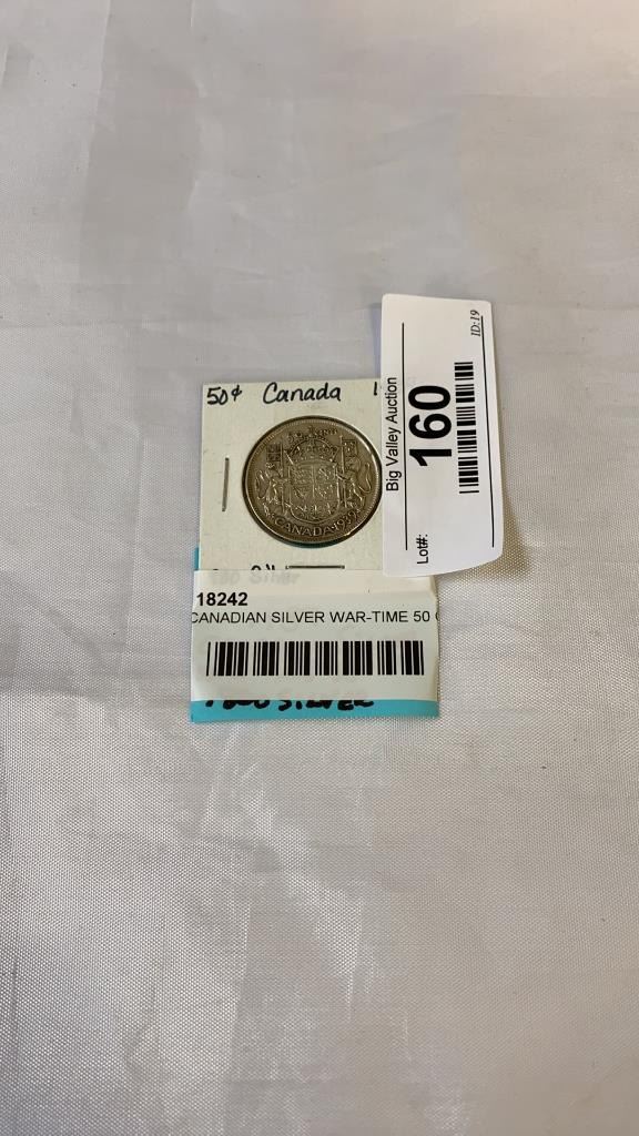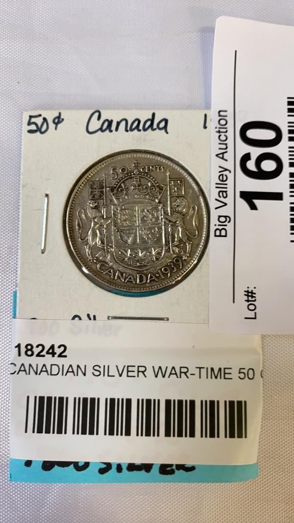 1939 CANADIAN SILVER WAR-TIME 50 CENT .800 SILVER