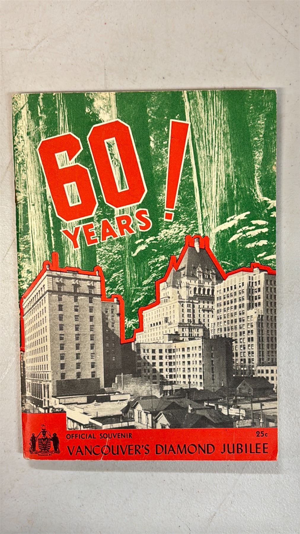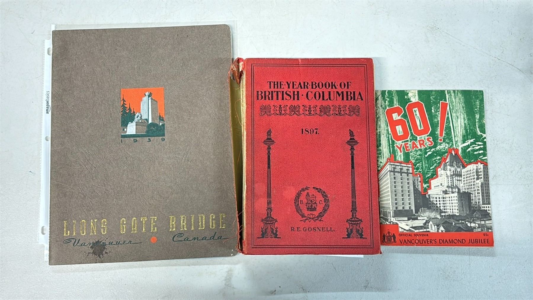 1939 LIONS GATE BRIDGE BOOKLET, 1897 THE YEARBOOK OF BRITISH COLUMBIA BOOK & 60 YEAR ANNIVERSARY VANCOUVER'S DIAMOND JUBILEE OFFICIAL SOUVENIR