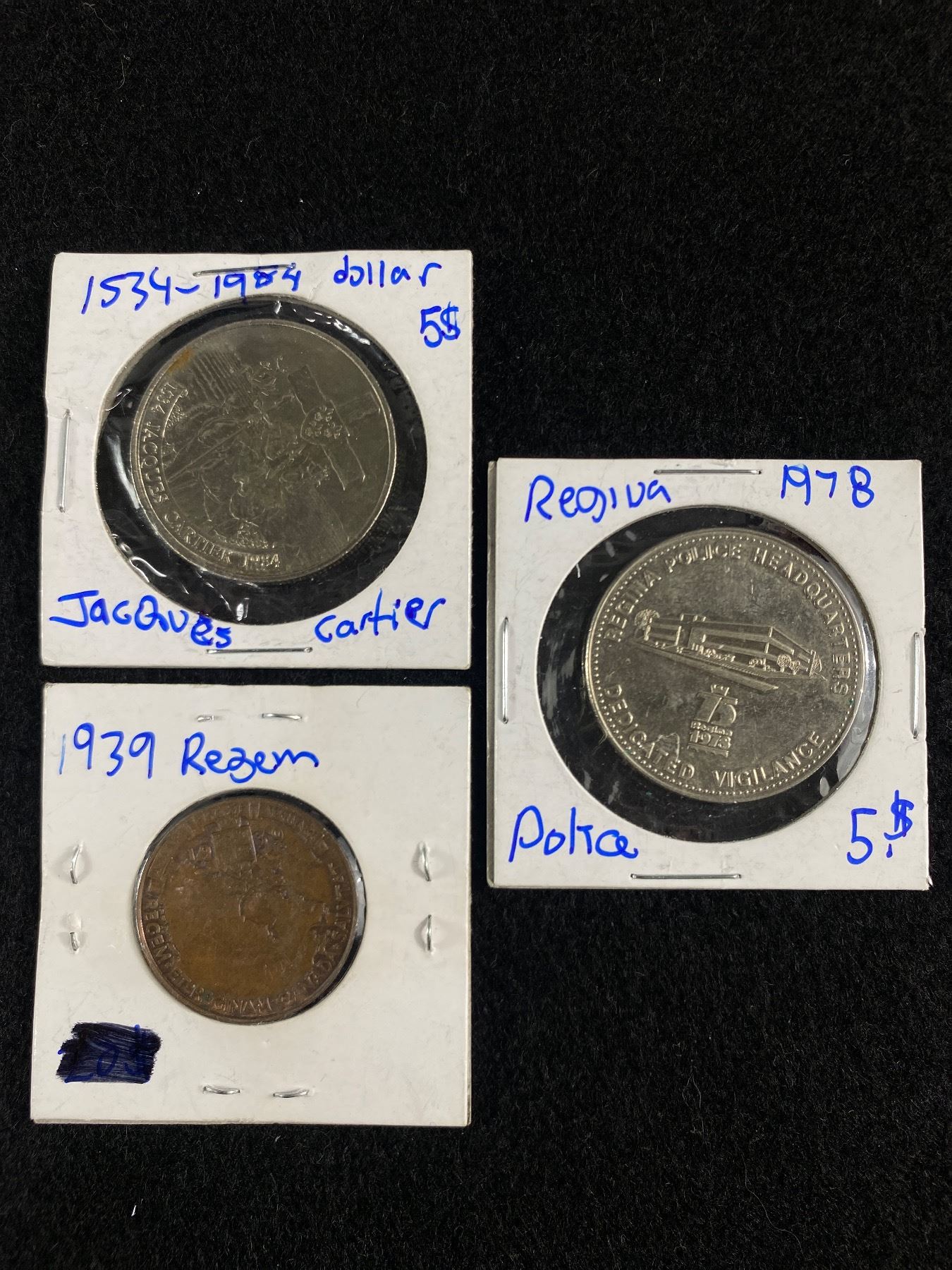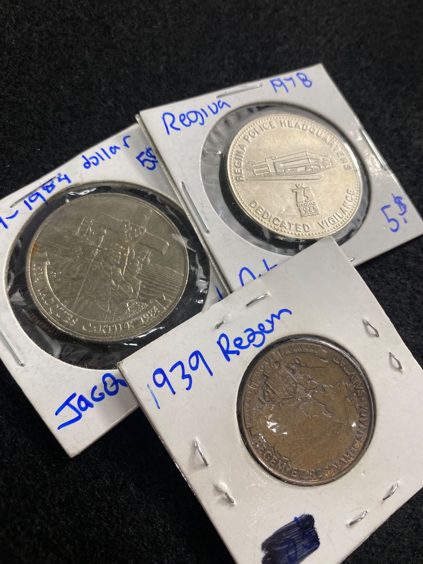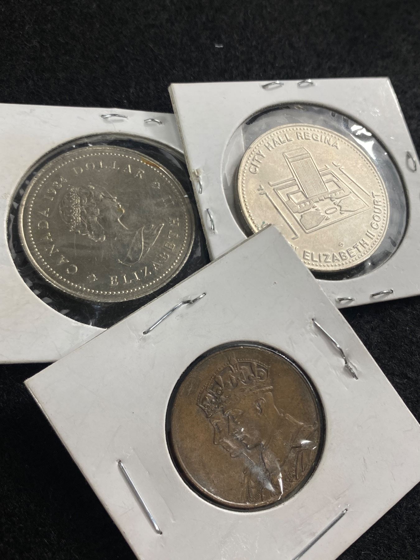 1939 Regem Et Reginam Canada Salvtat Coin Token, 1984 Jacques Cartier Canada Dollar & 1978 Regina City Hall & Police Headquarter Coin Token