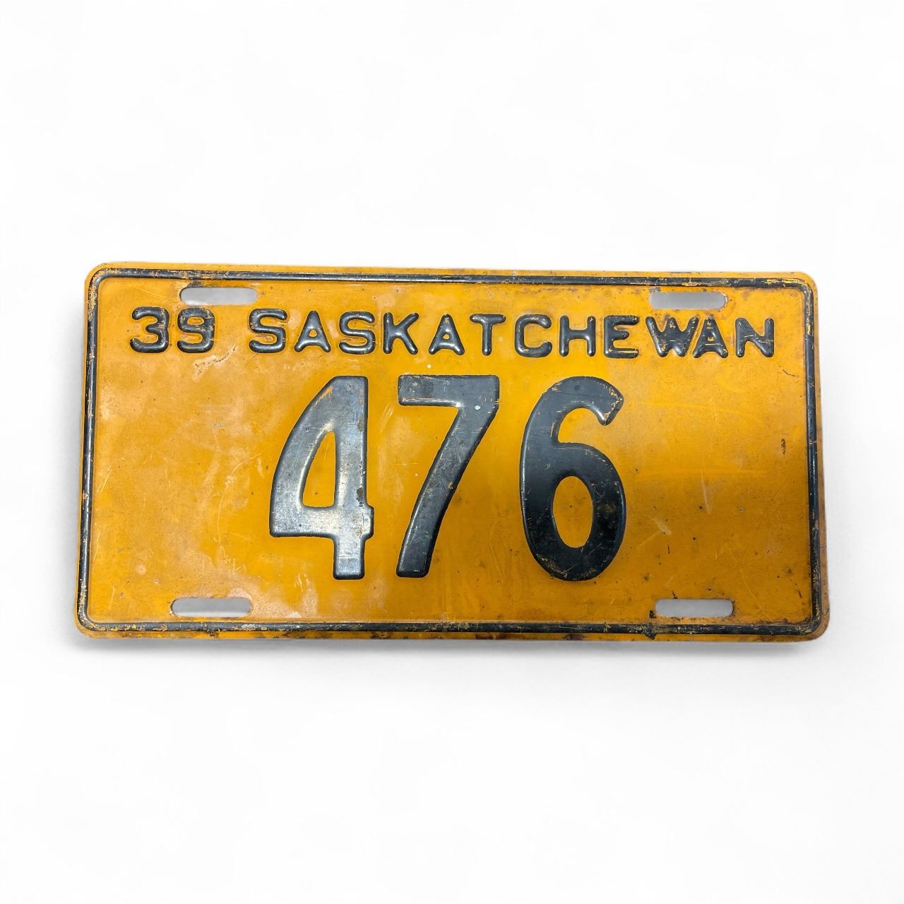1939 Saskatchewan 3 Digit Single License Plate - 476