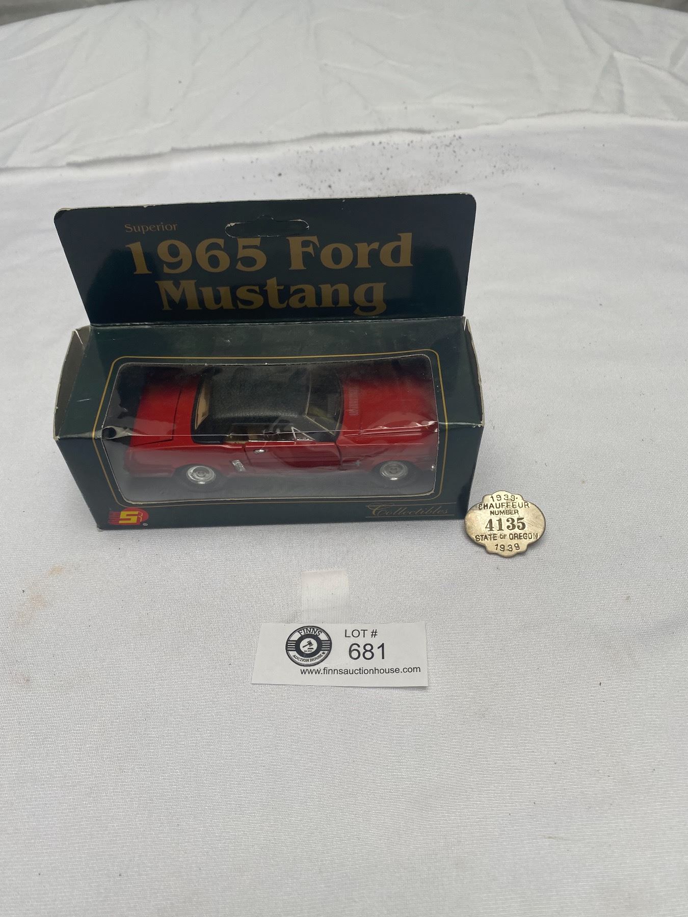 1939 State of oregon chauffer Badge Plus 1965 Ford Mustang 1:43 scale in Package