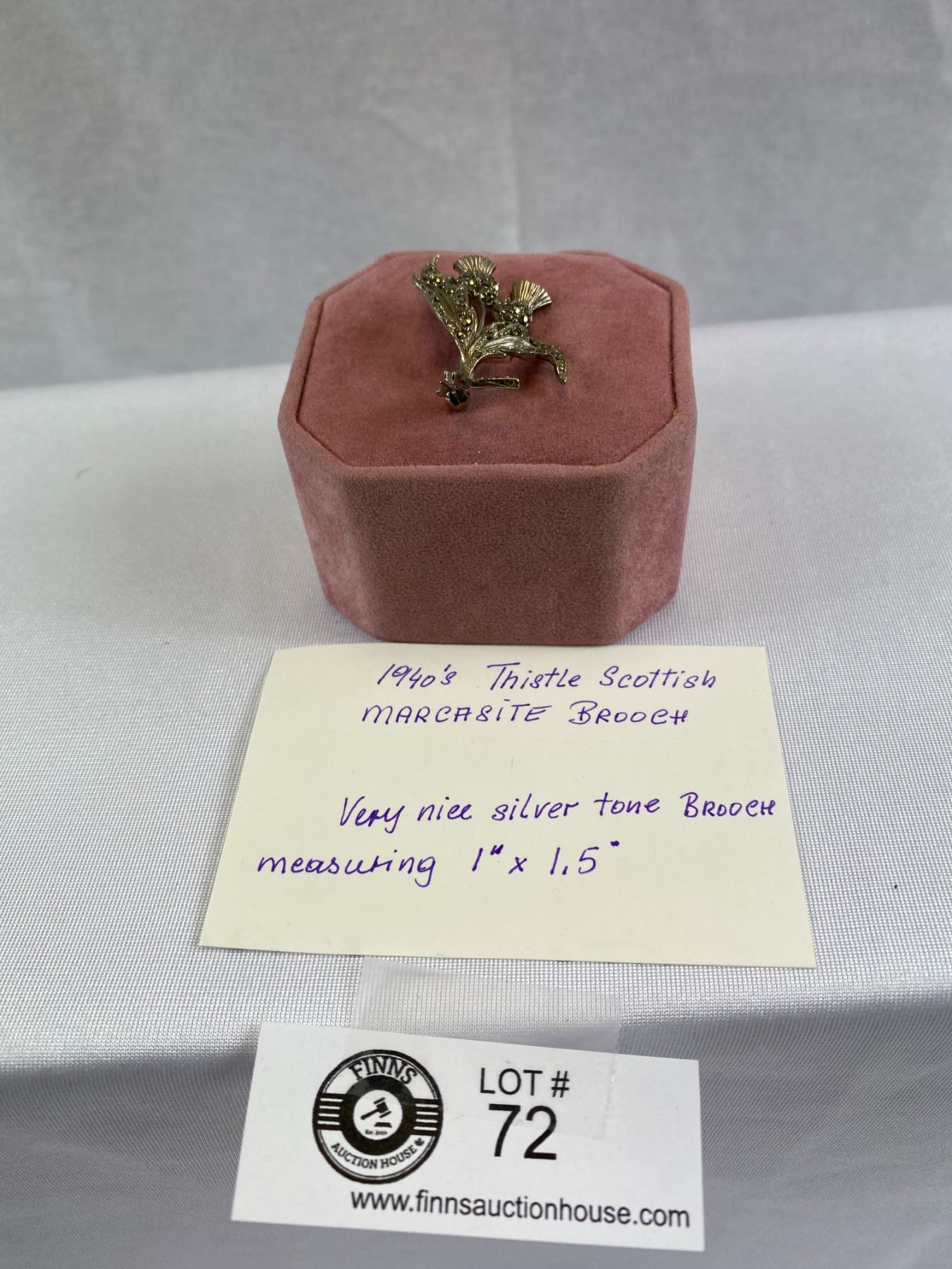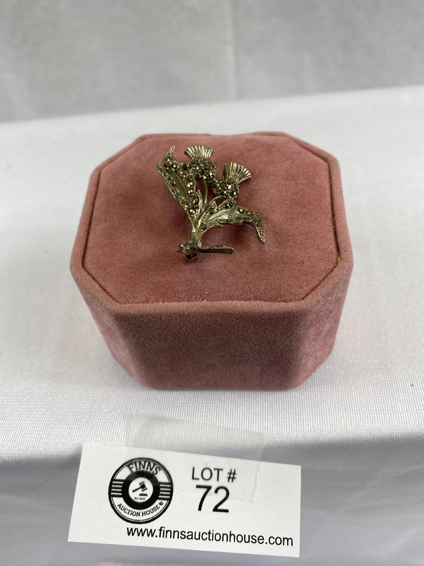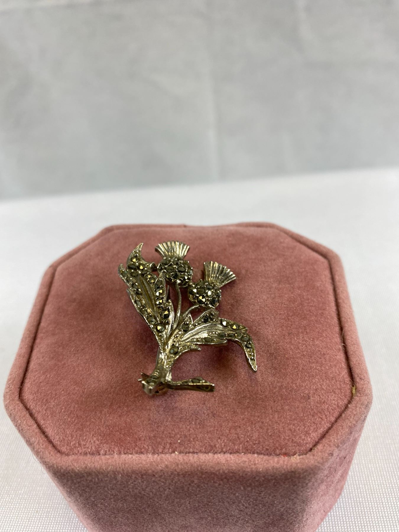 1940's Thistle Scottish Marcasite Brooch Silver Tone Measuring 1''x1.5''