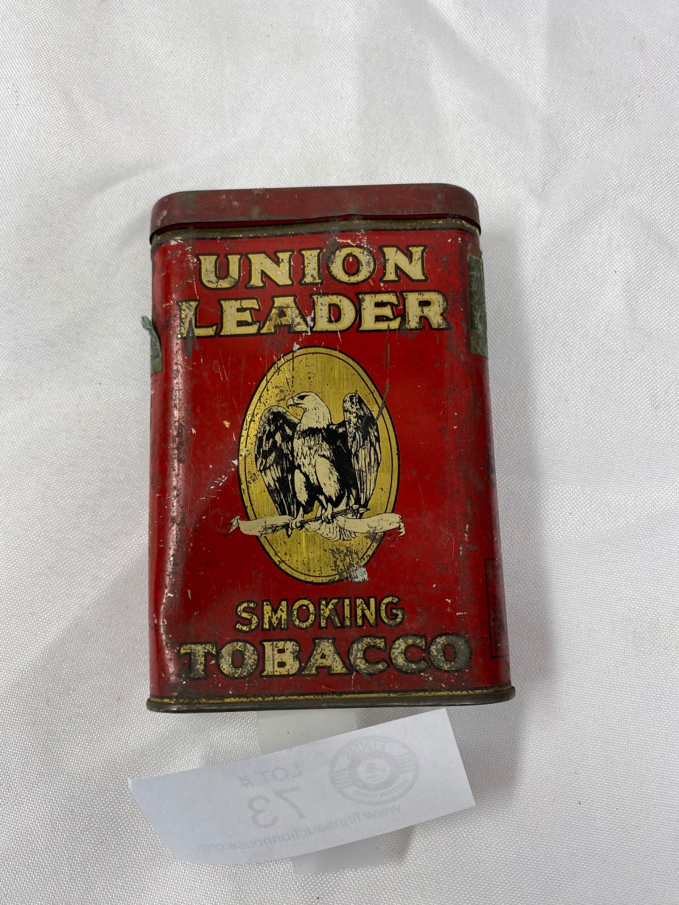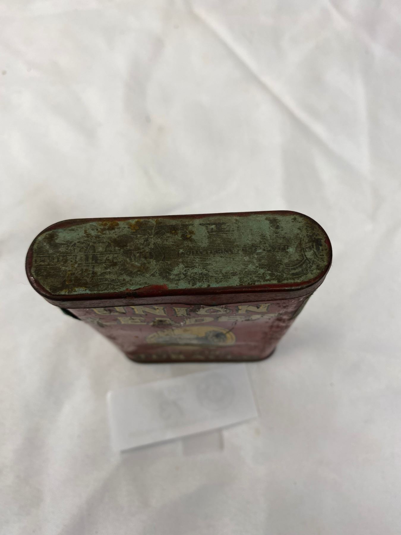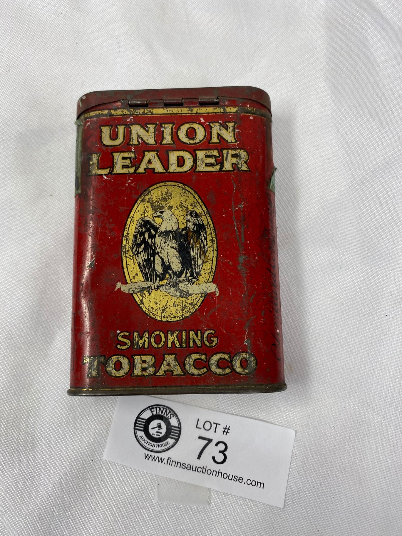 1940's Union Leader Pocket Tobacco Tin Hinged Lid