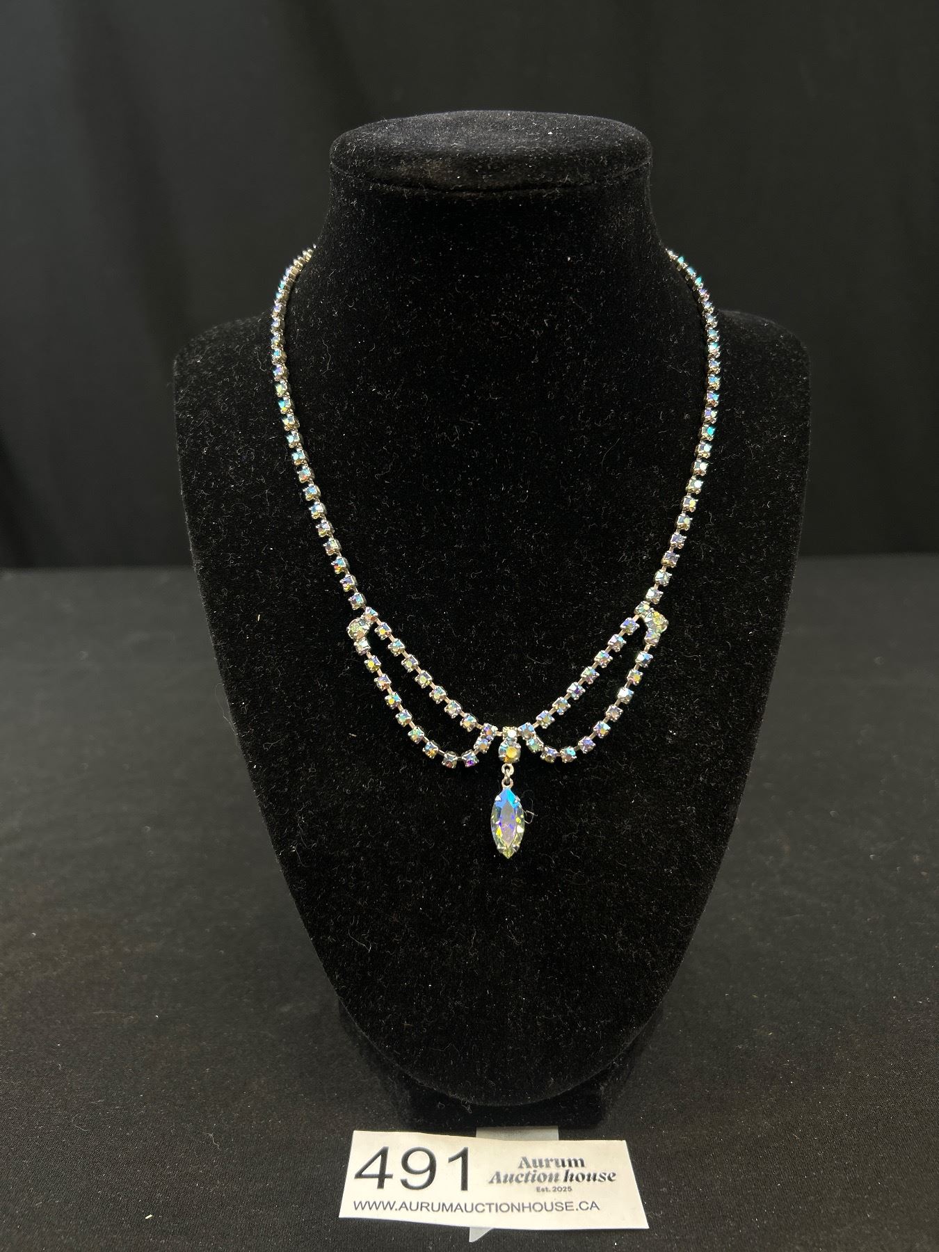 1940s Rhinestone Teardrop Necklace in Good Condition