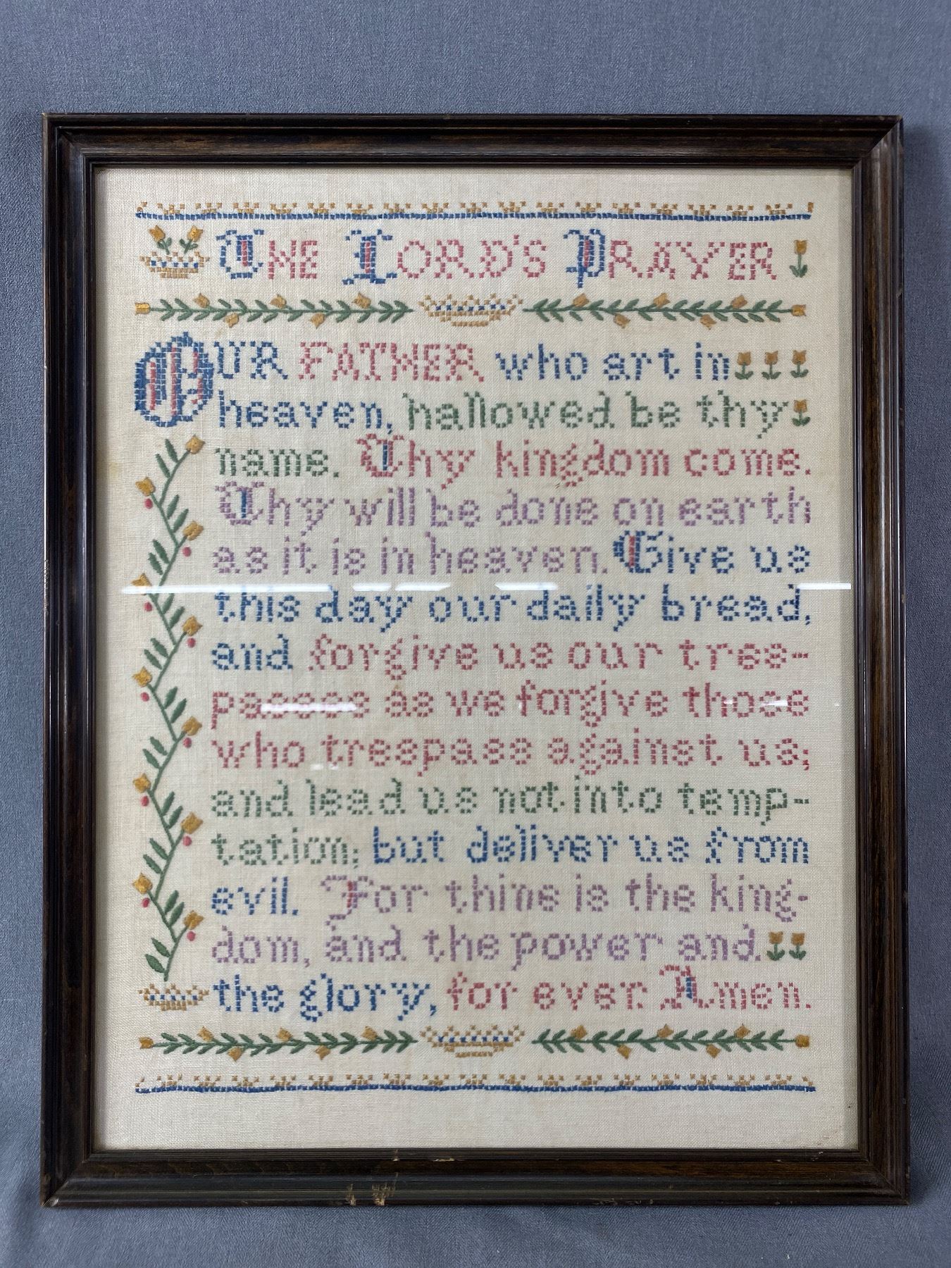 1942 Framed Cross Stitch "The Lord's Prayer" Approx.15" x 19"