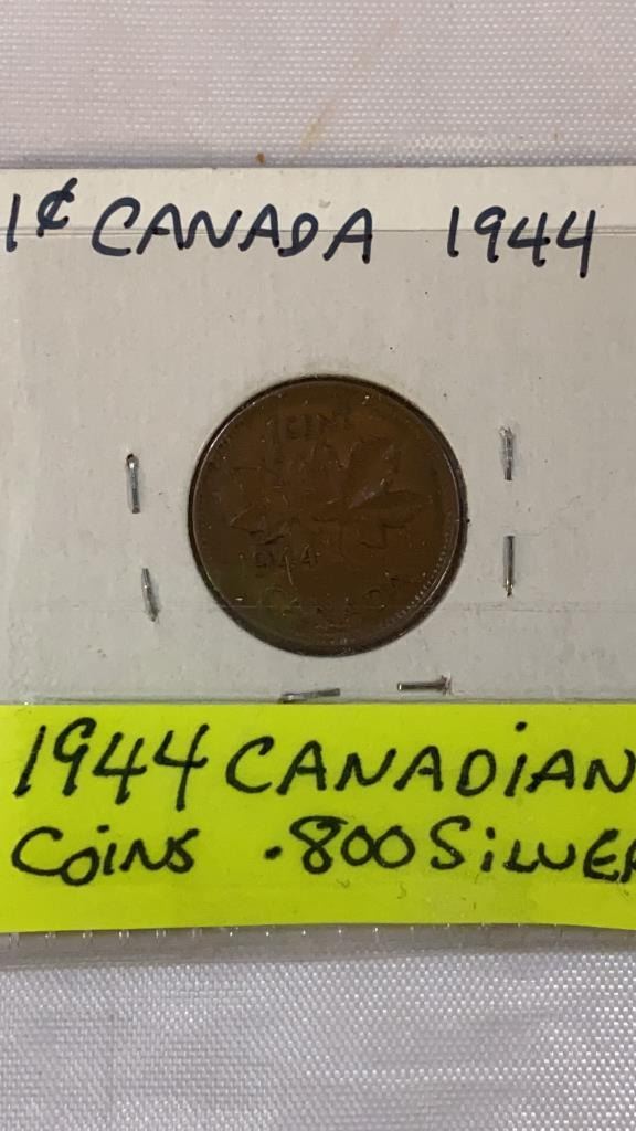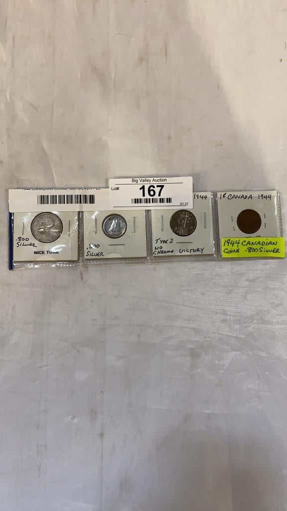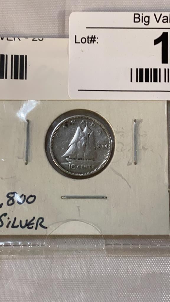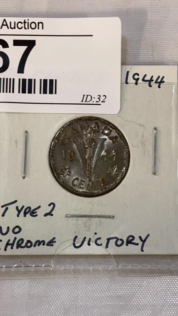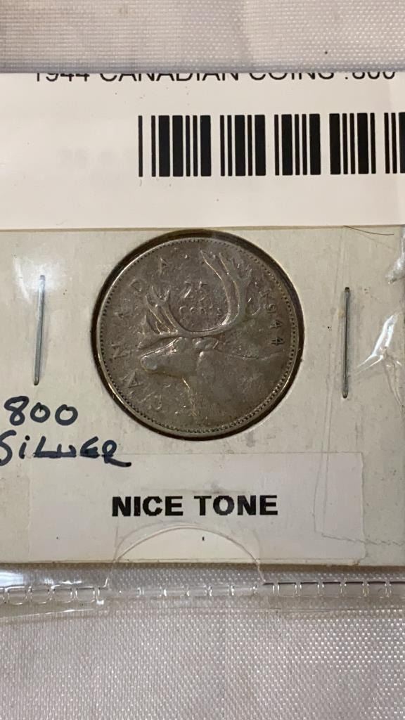 1944 CANADIAN COINS .800 SILVER - 25 CENT, 10 CENT, AND TYPE 2 VICTORY NICKEL