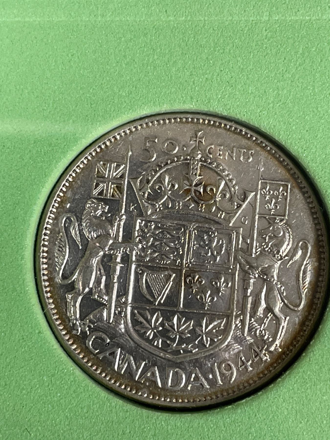1944 Canadian Silver 50 Cent Piece in Hard Case