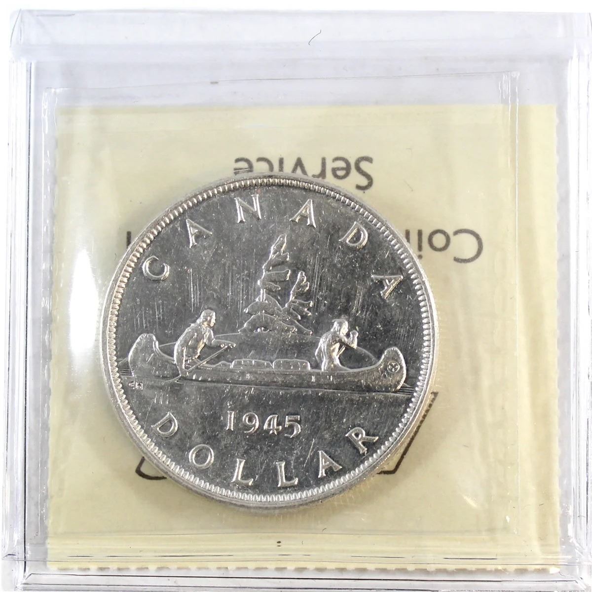 1945 King George VI Canadian Silver Dollar ICCS-AU-55