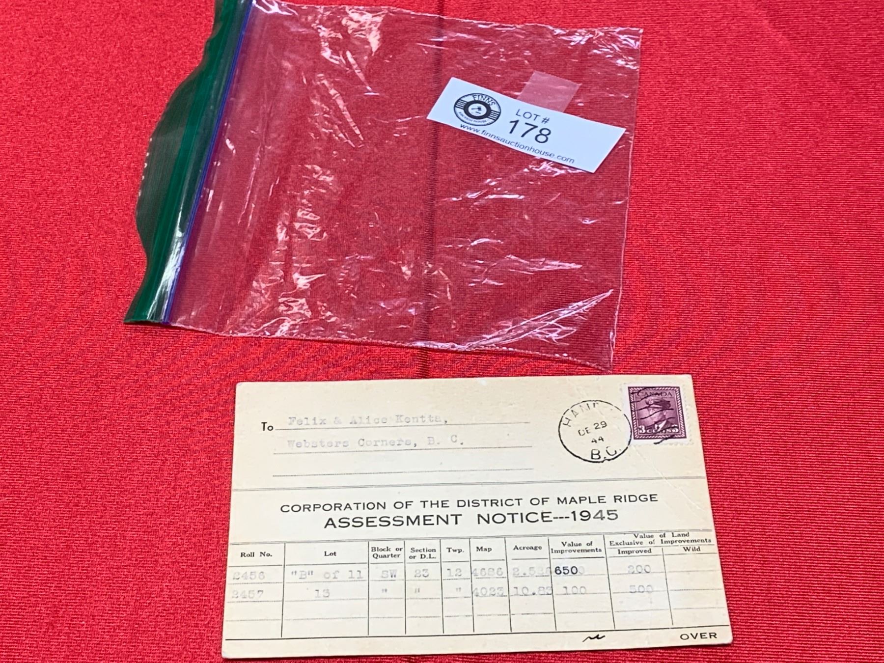 1945 Notice of assesment, Maple Ridge B.C.