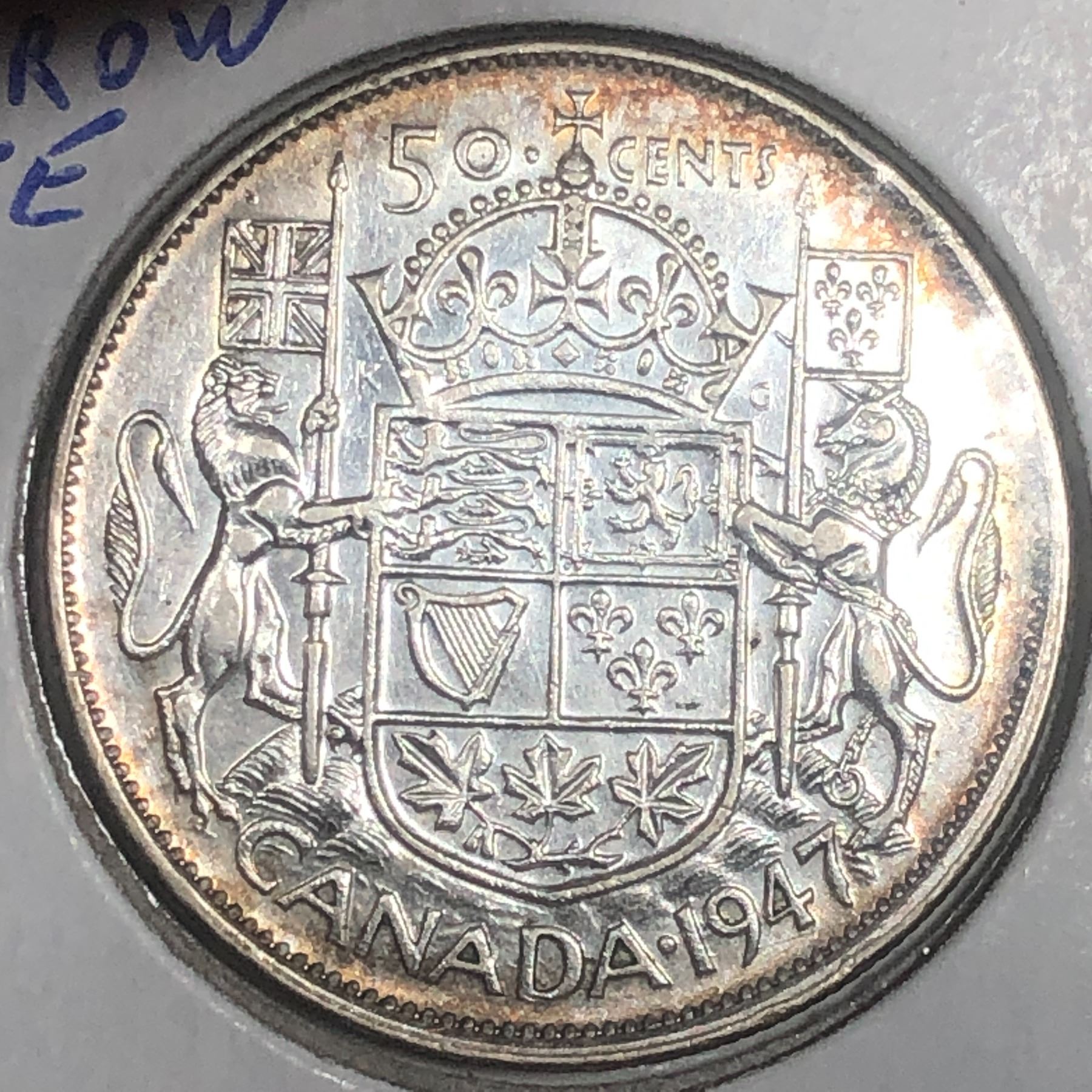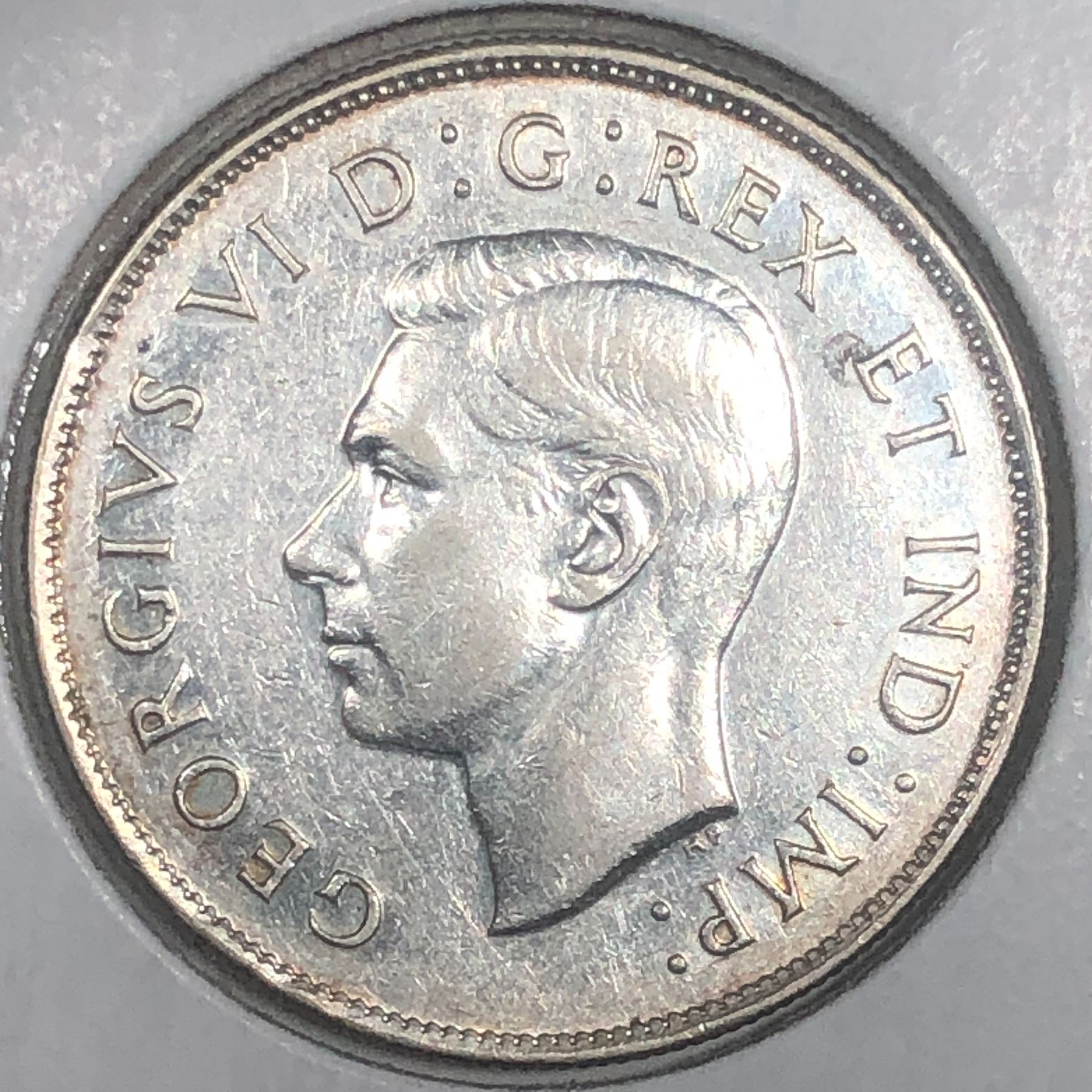 1947 Curved Right King George VI 50 Cents UNC