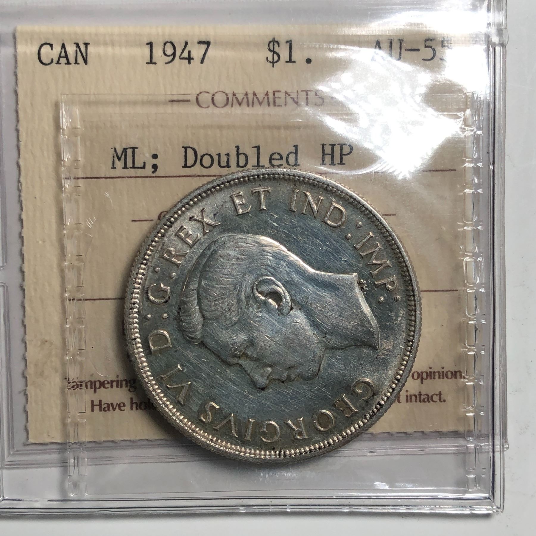 1947 Maple King George VI Canadian Silver Dollar ICCS-AU-55
