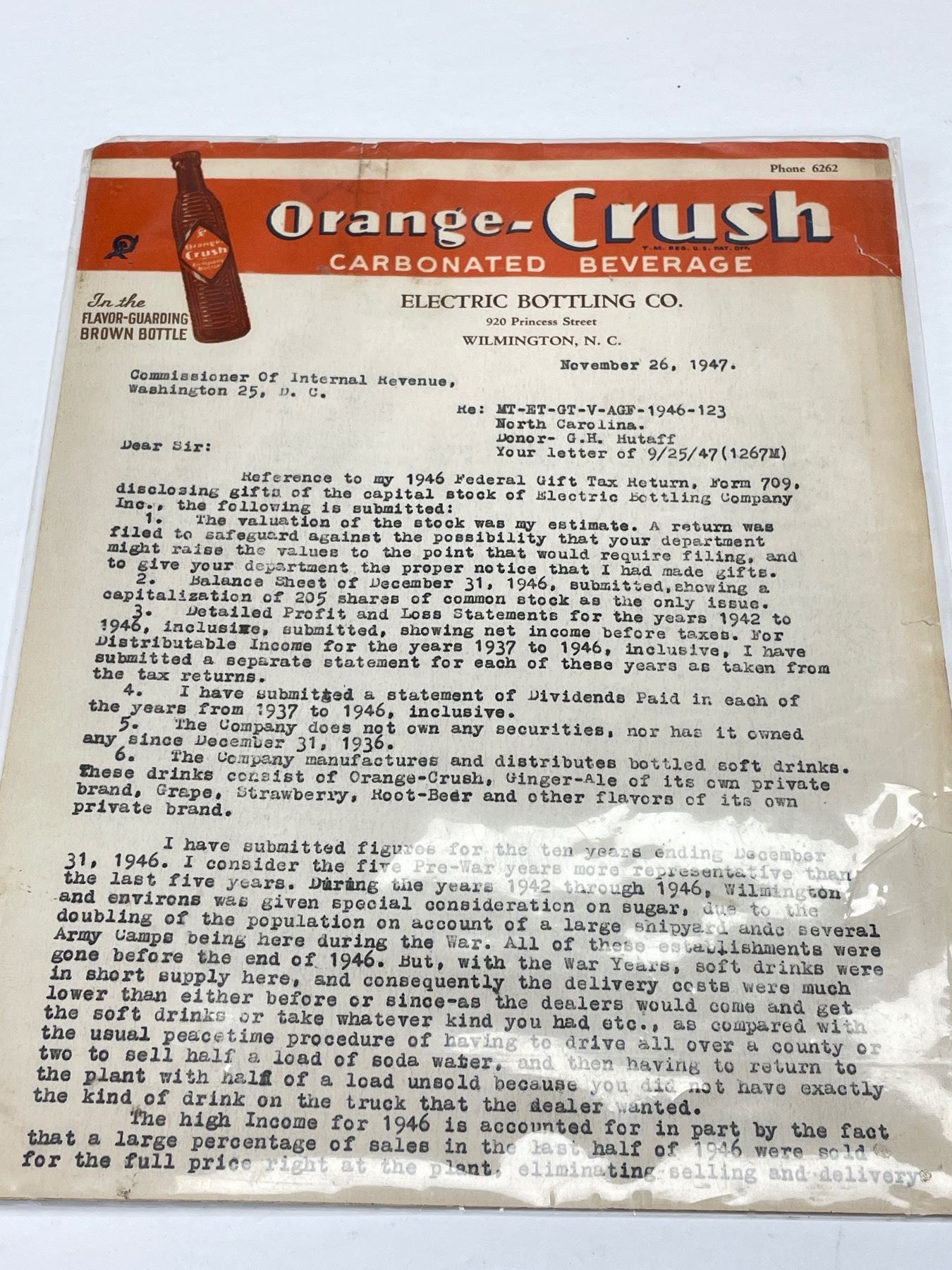 1947 Orange Crush Letter