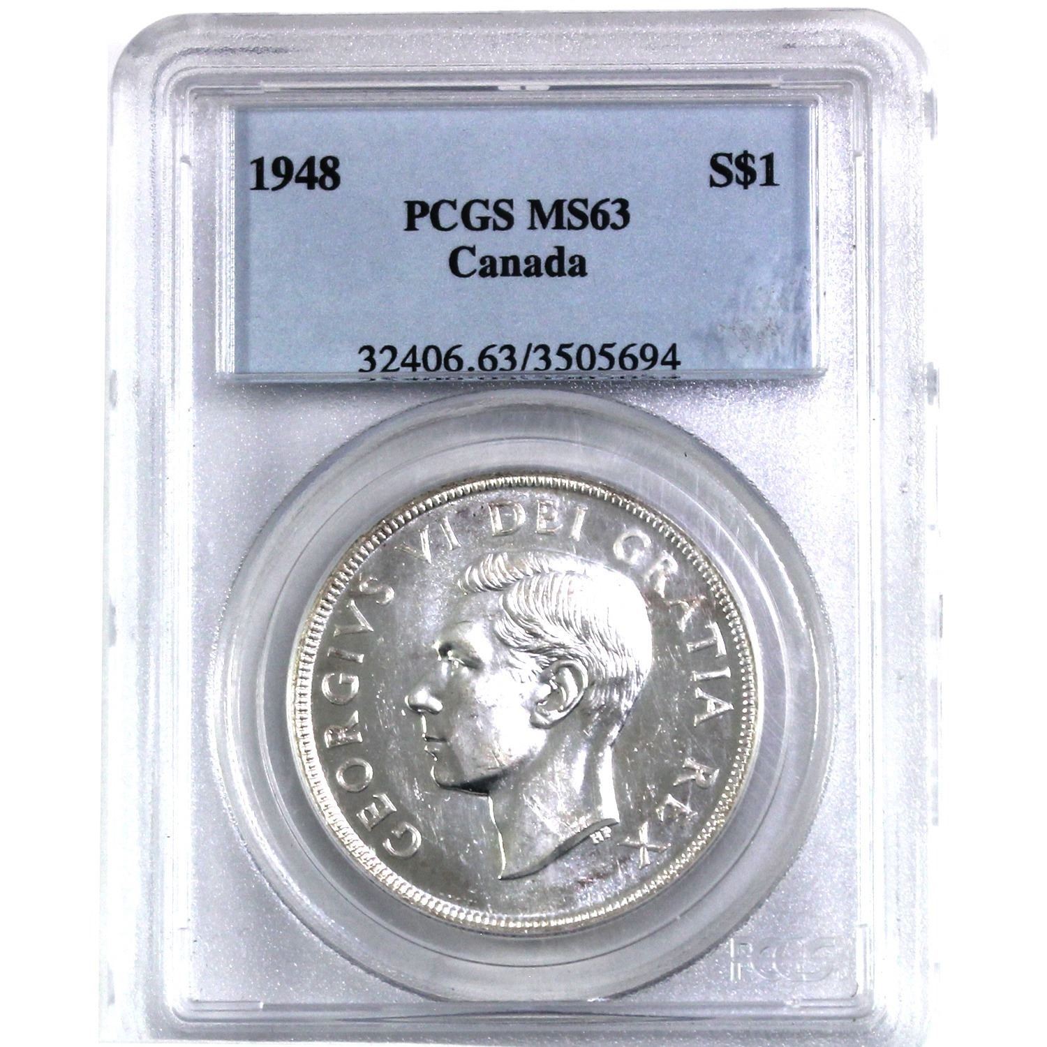 1948 King George VI Canadian Silver Dollar PCGS MS63 Blast White Light Cameo