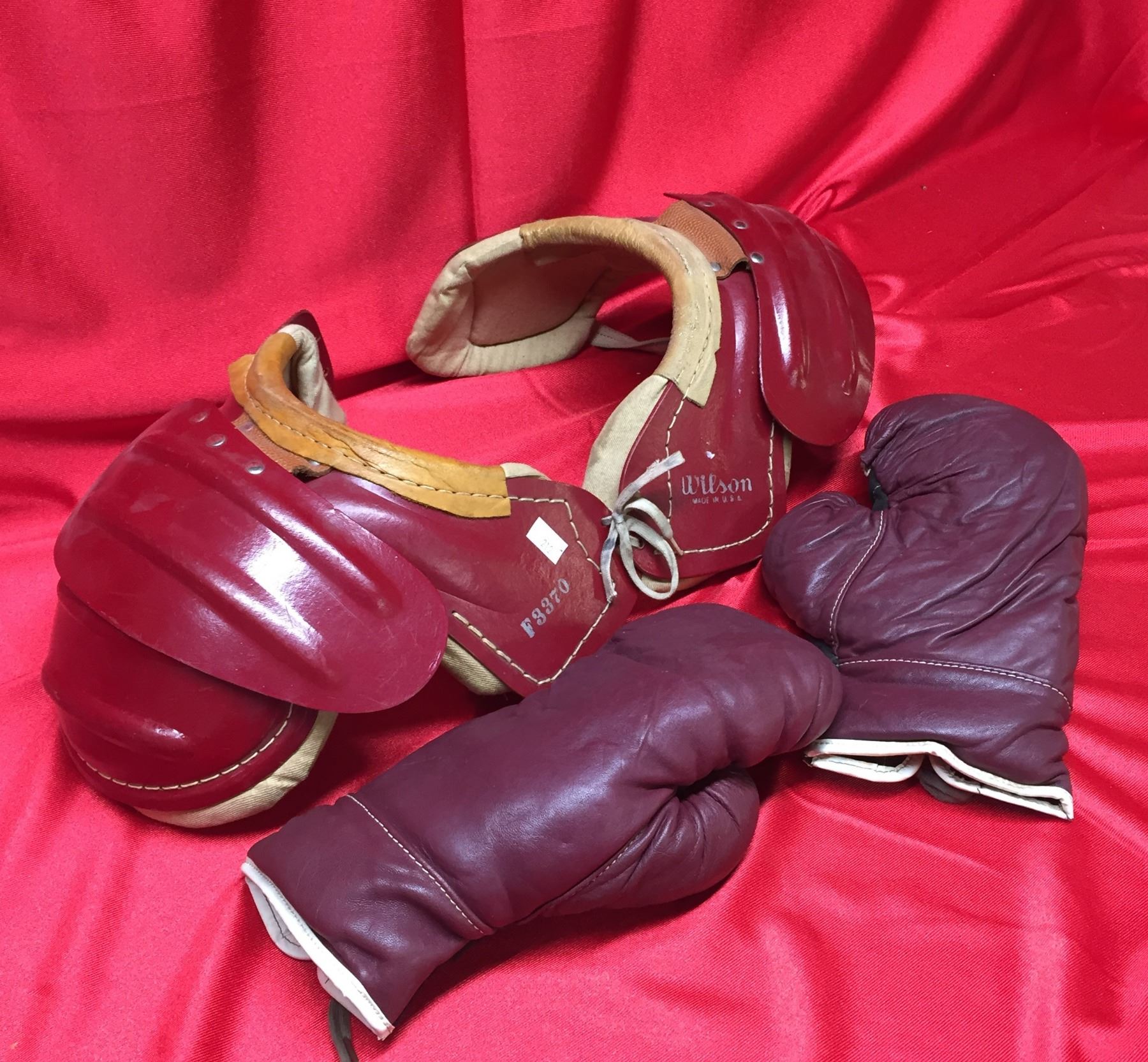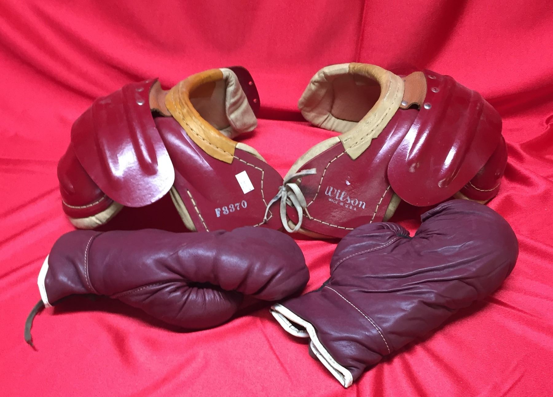 1950's-1960's Vintage Red Grange Youth Size Football Shoulder pads and Vintage Boxing Gloves