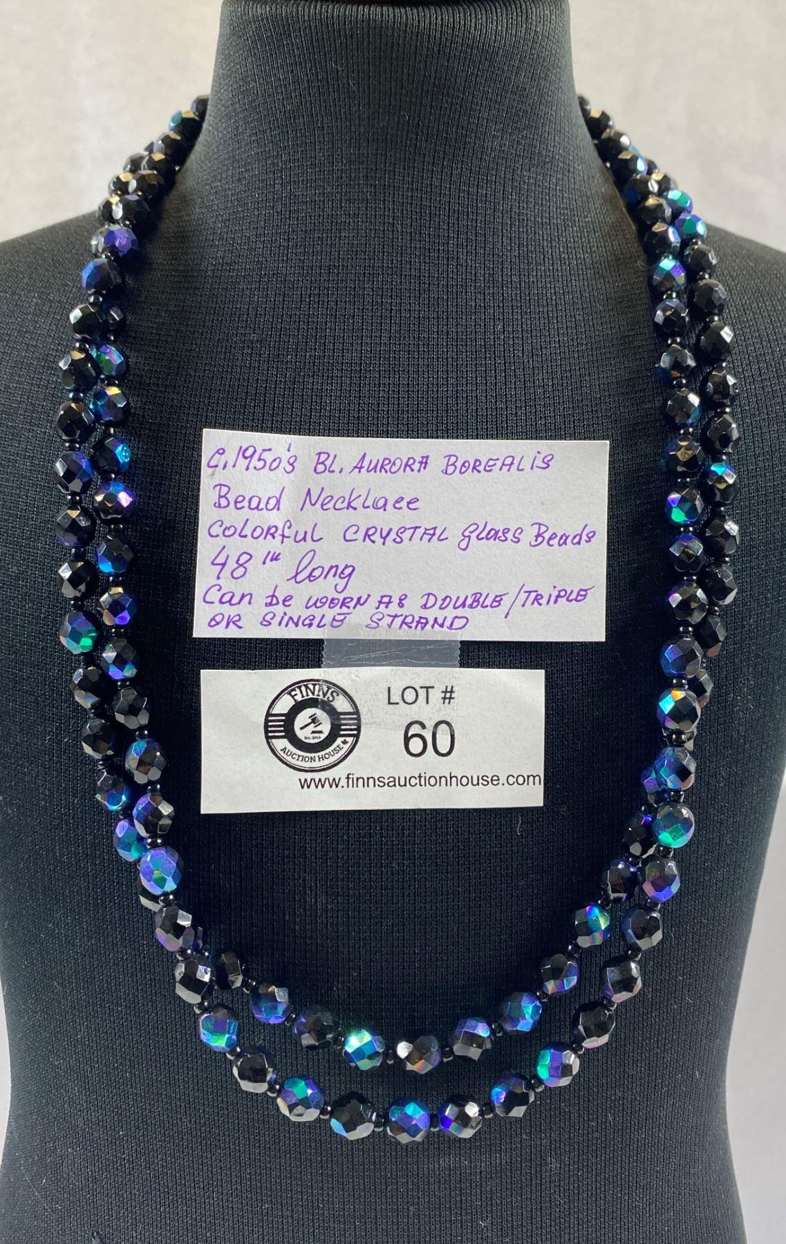 1950's Aurora Borealis Bead Necklace colourful crystal glass beads 48'' long