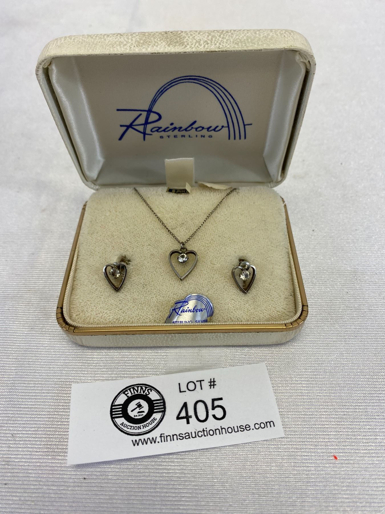 1950's Rainbow Sterling Necklace and Earrings in Original Box