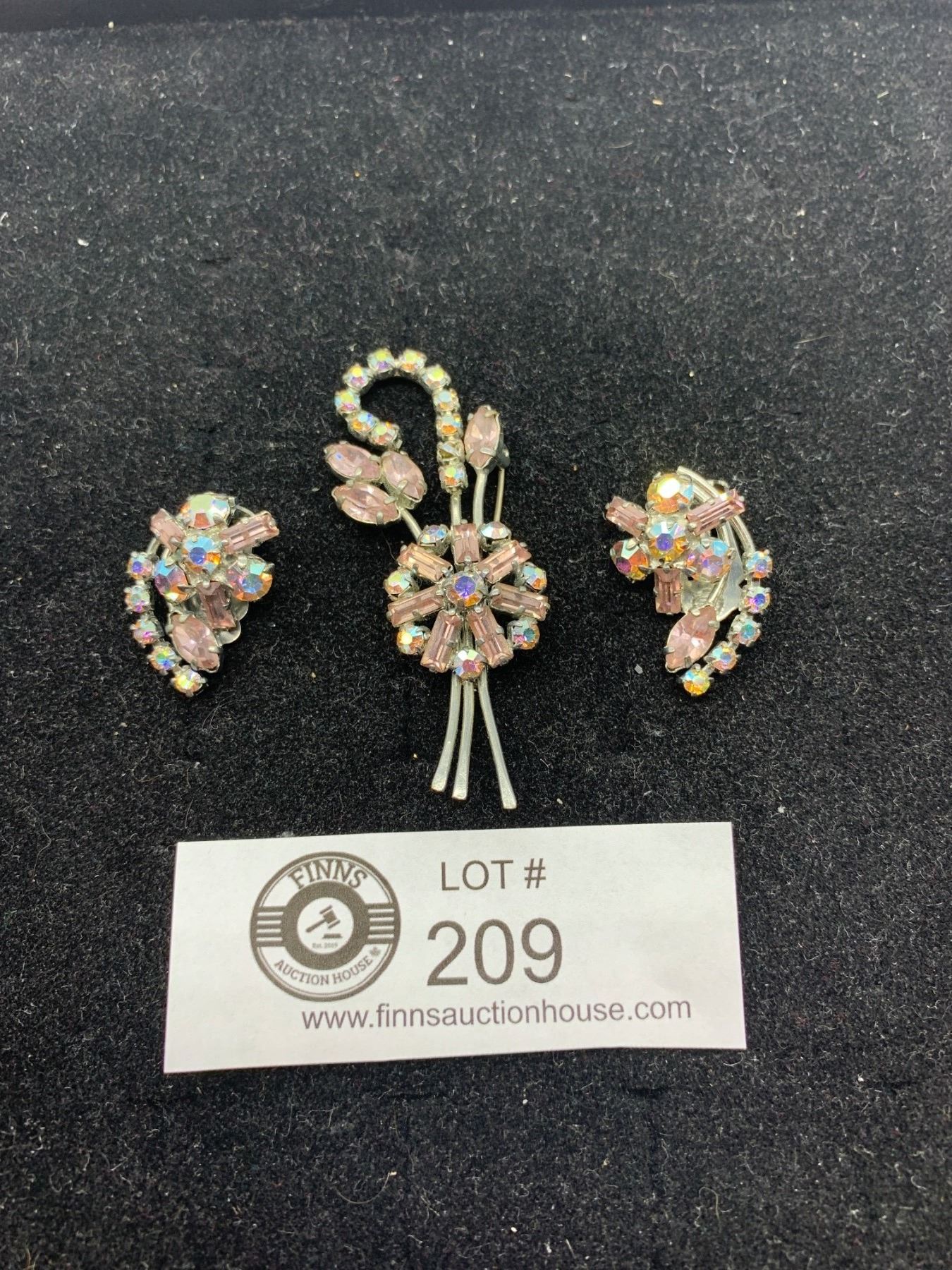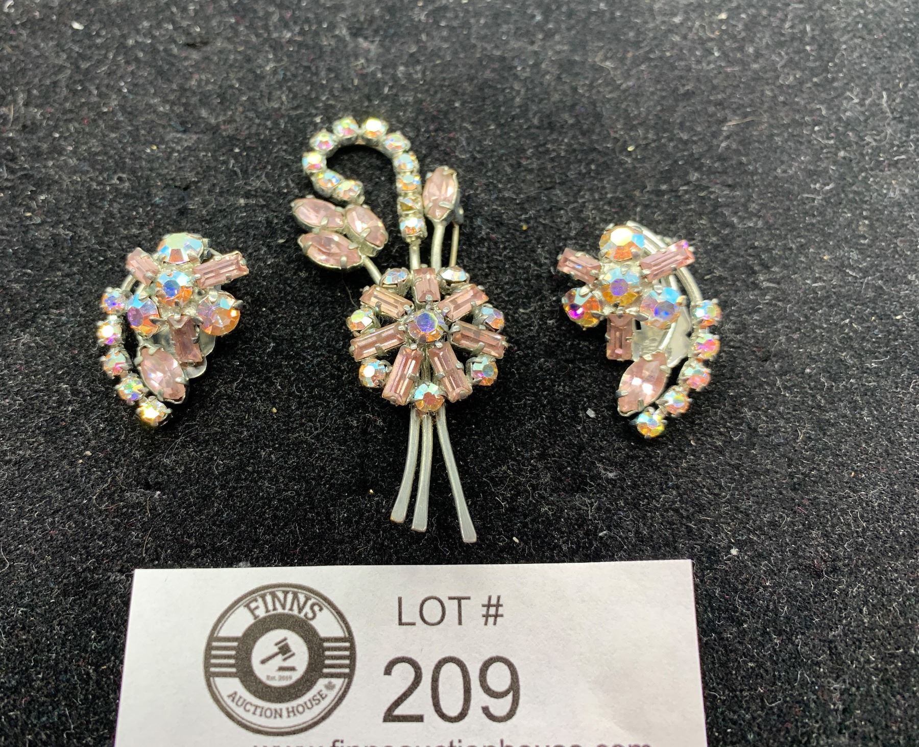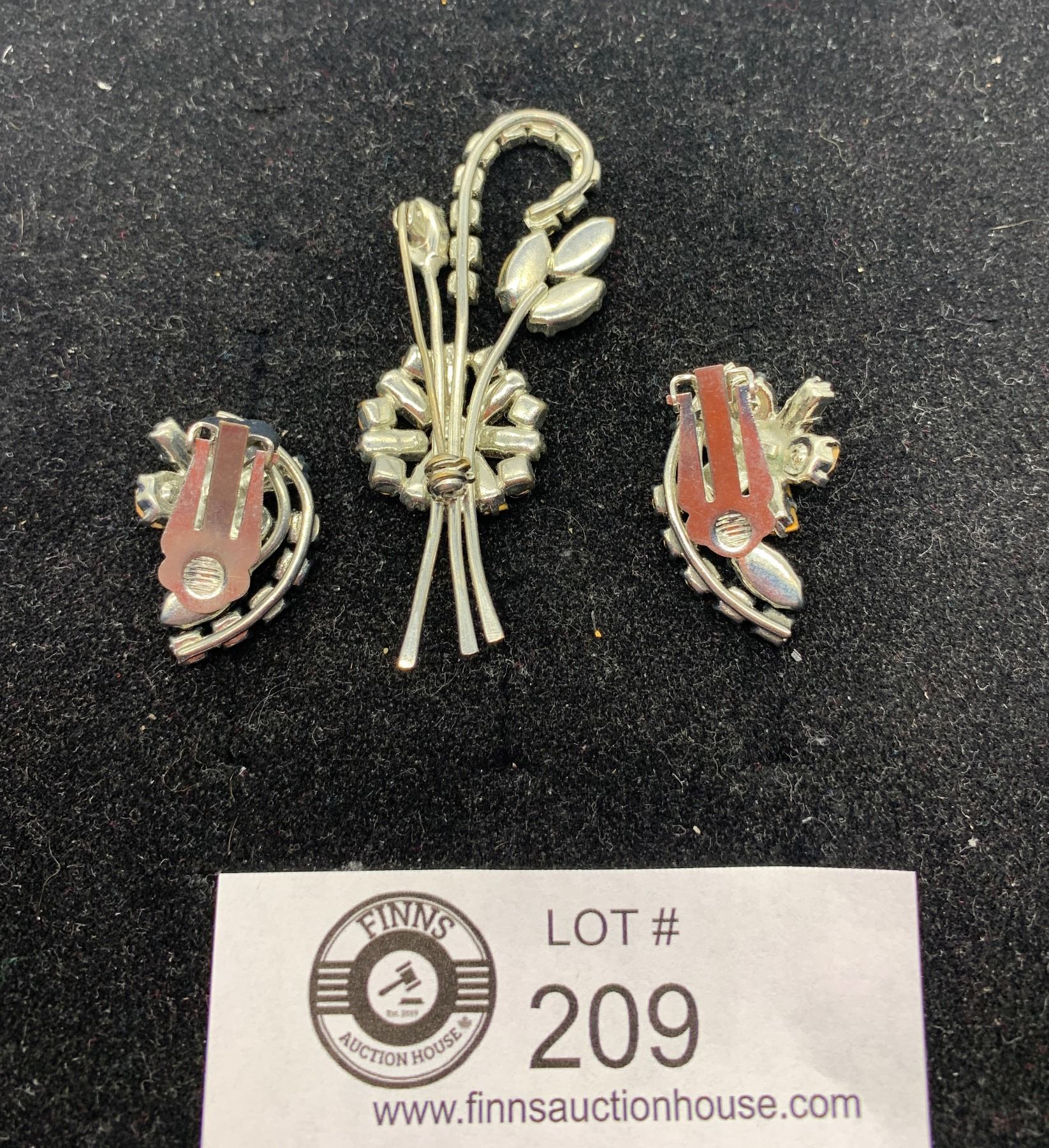 1950's Rhinestone Brooch and Earrings