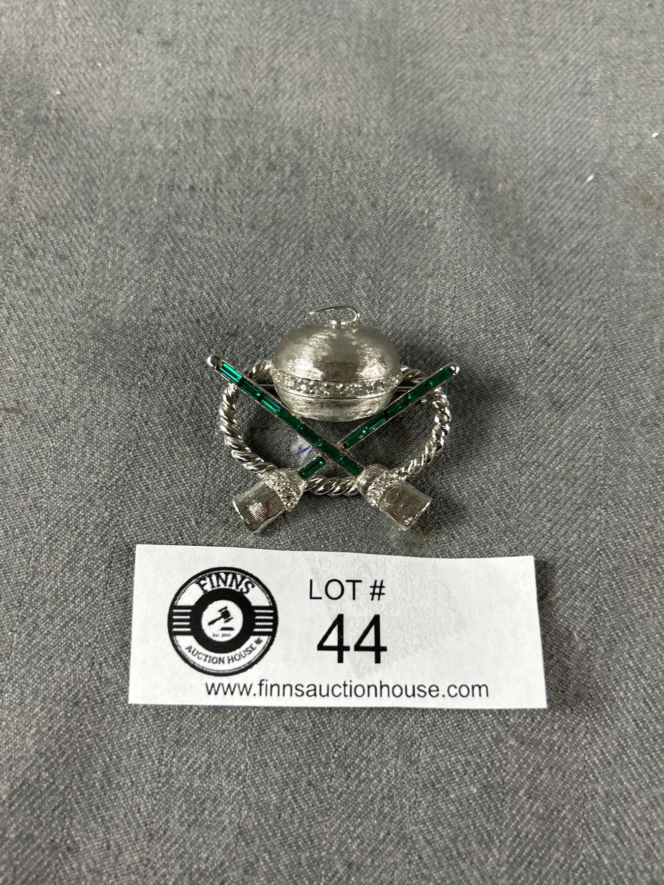 1950's Simulated Diamond Emerald Curling Brooch