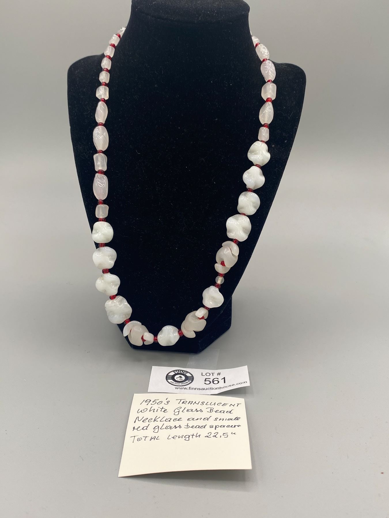 1950's Translucent White Glass Bead Necklace and Small Red Glass Bead Spacers