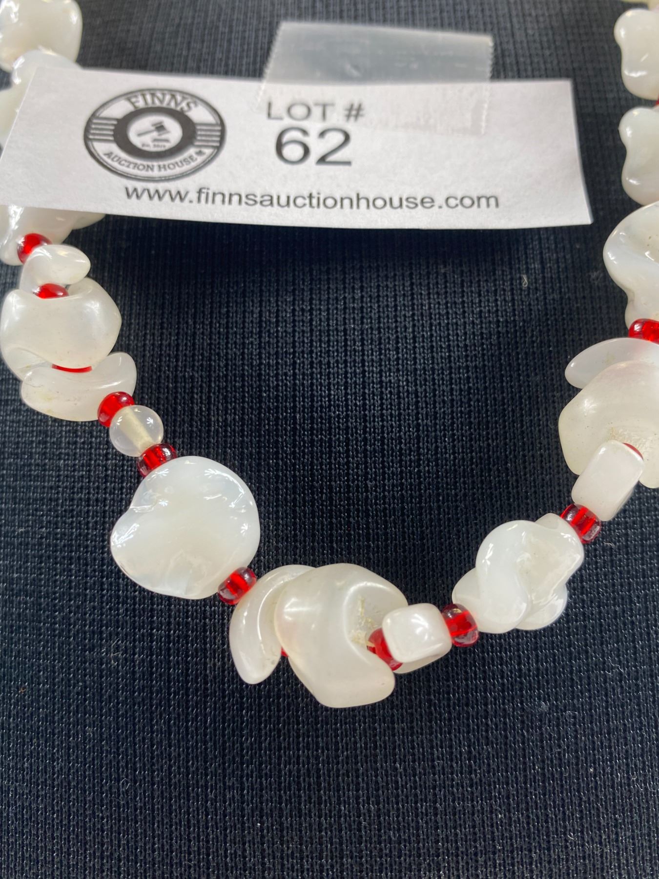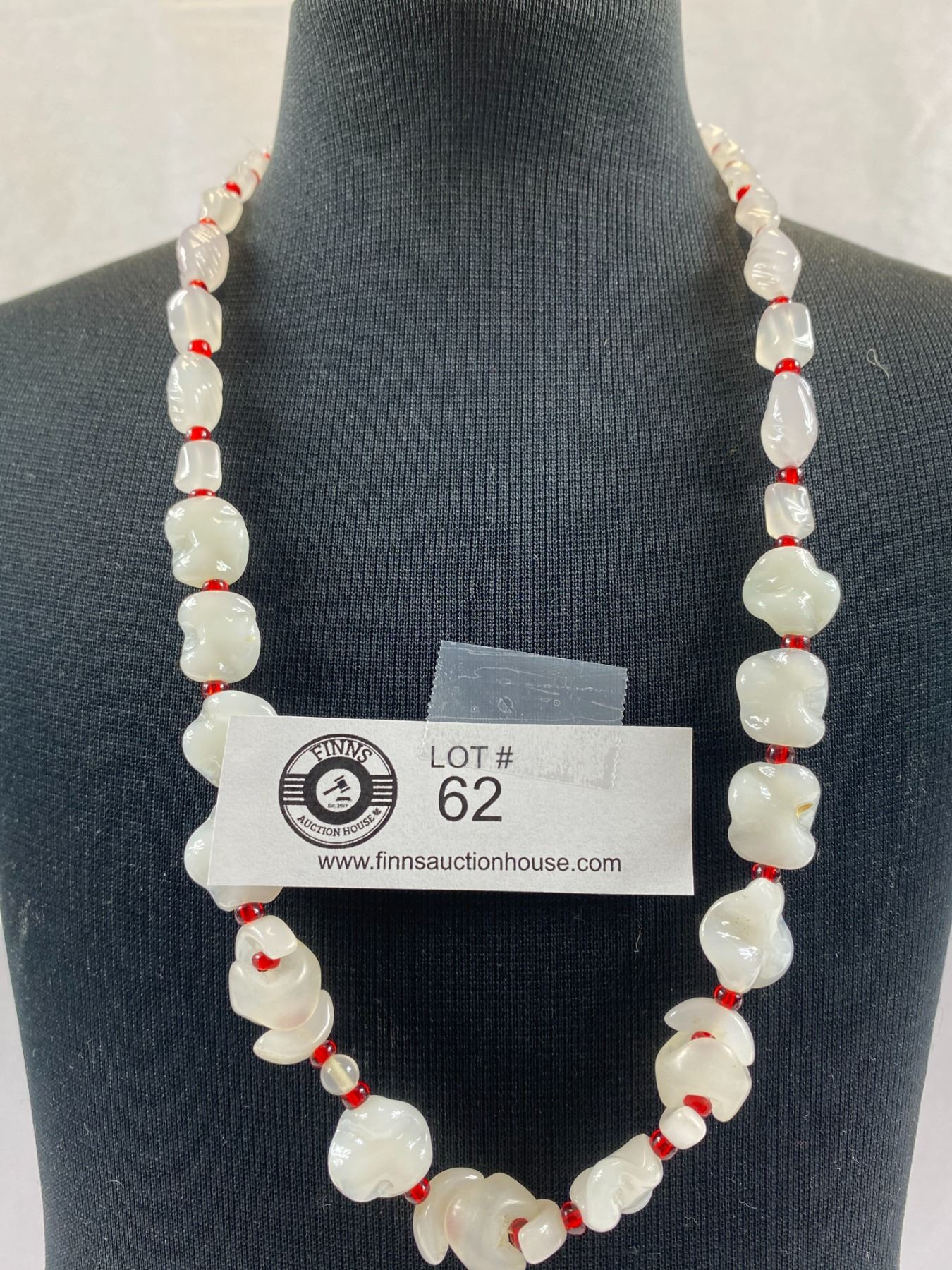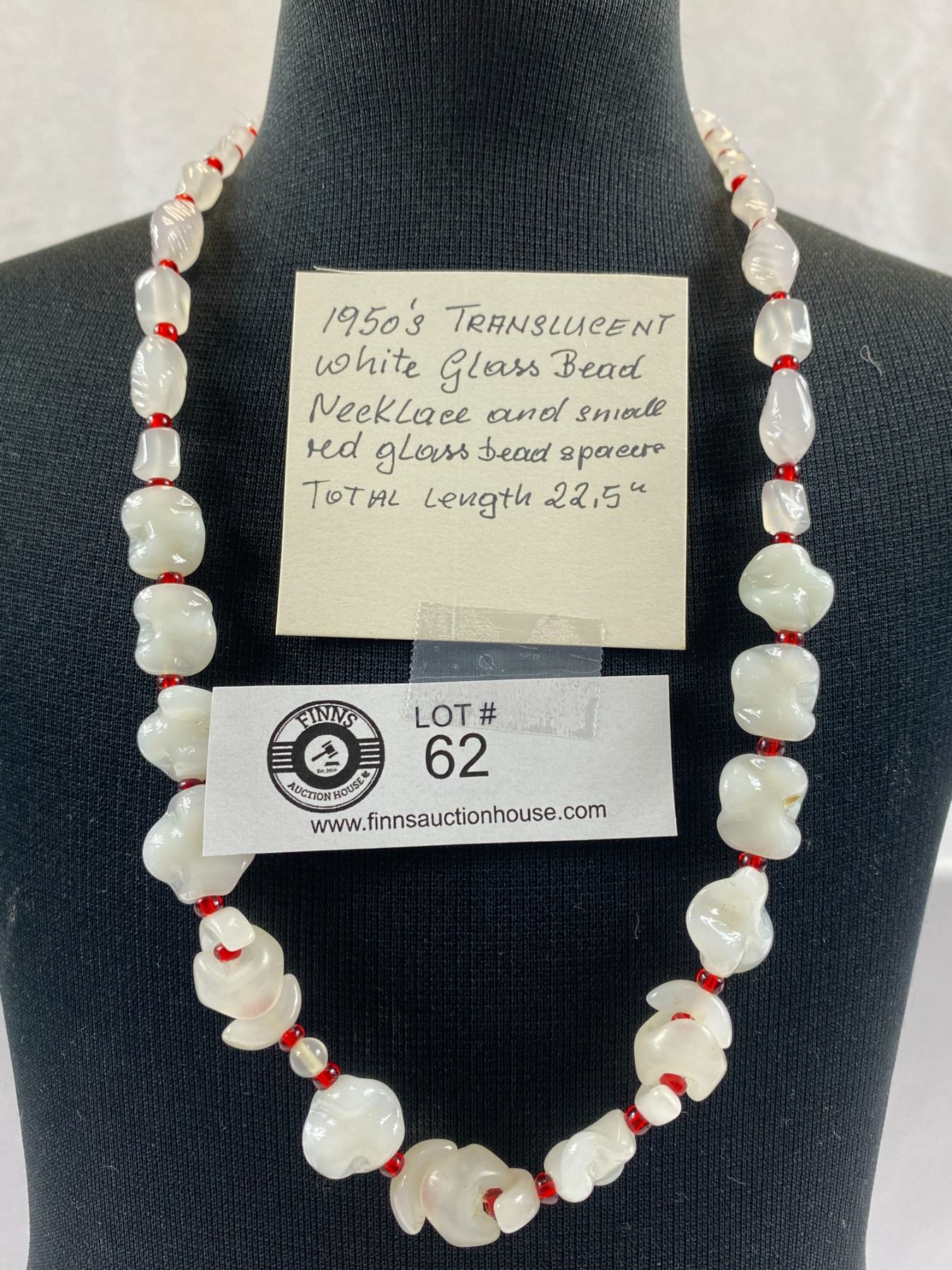 1950's Translucent White Glass Bead Necklace total length 22.5''