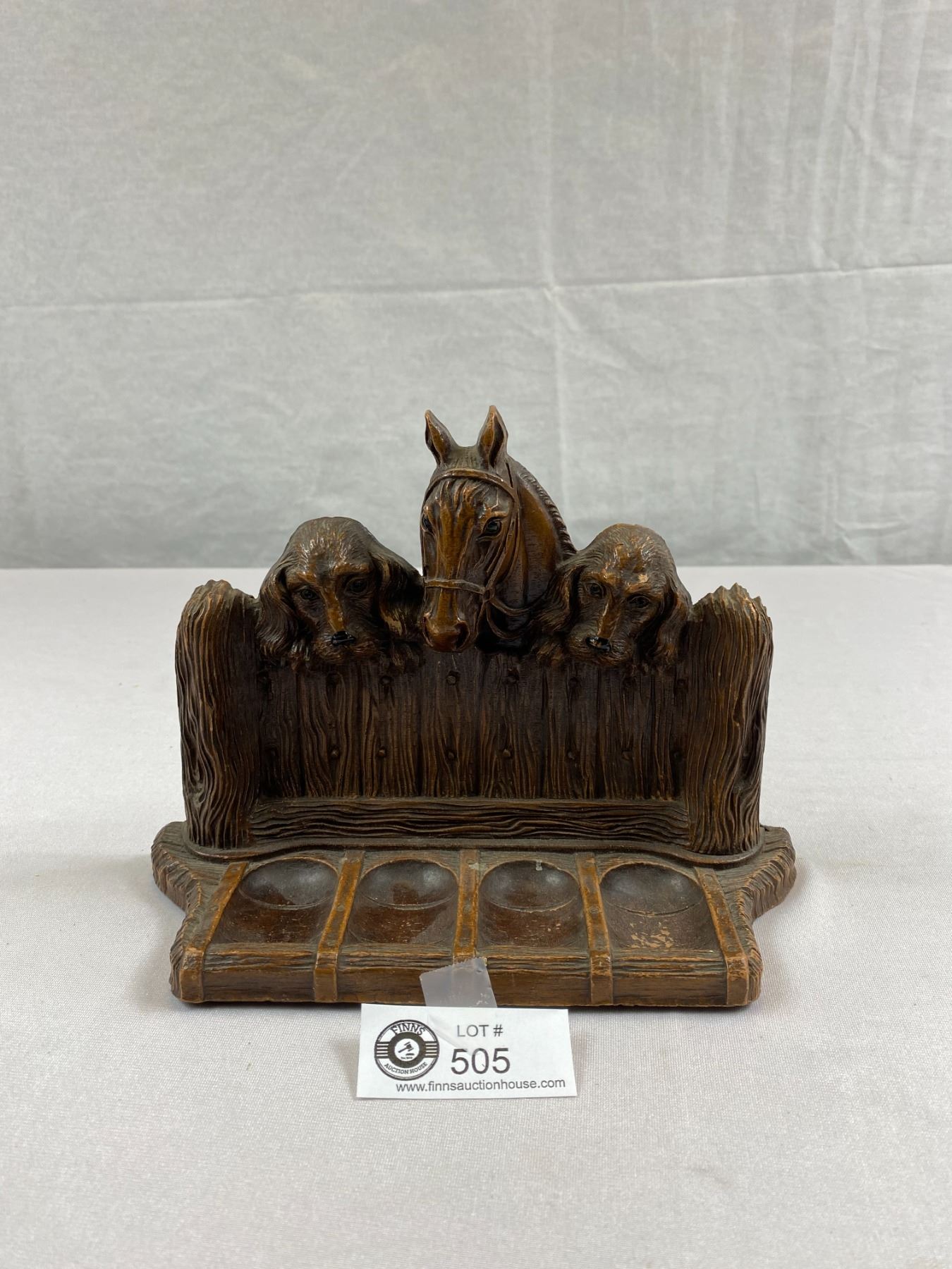 1950's Wood Pipe Stand With Horse And Dogs