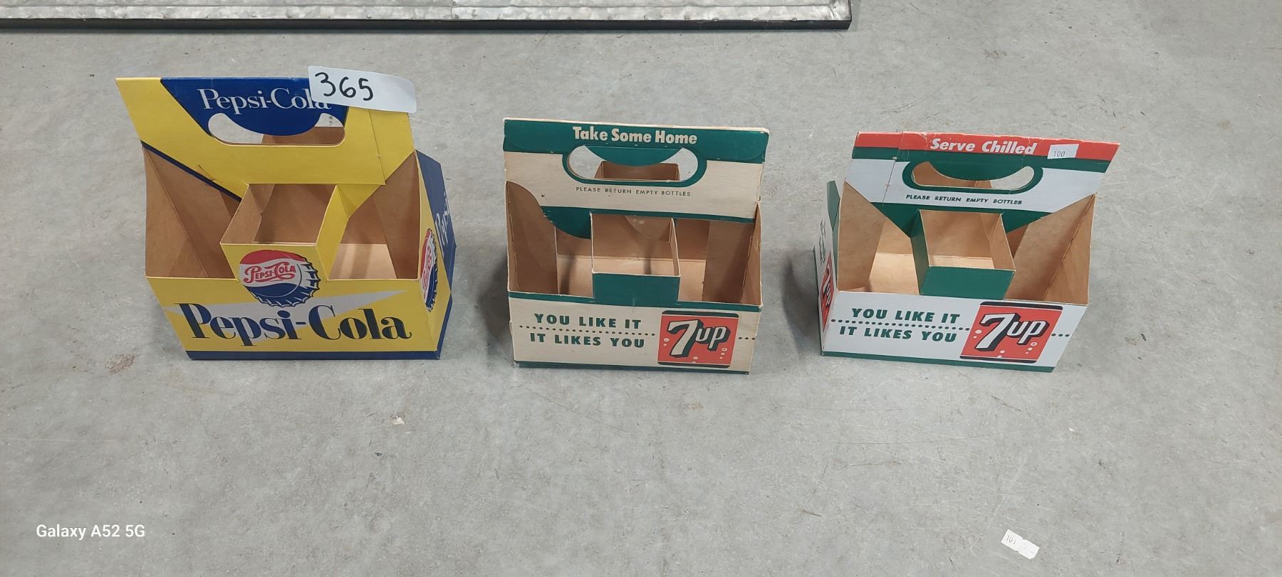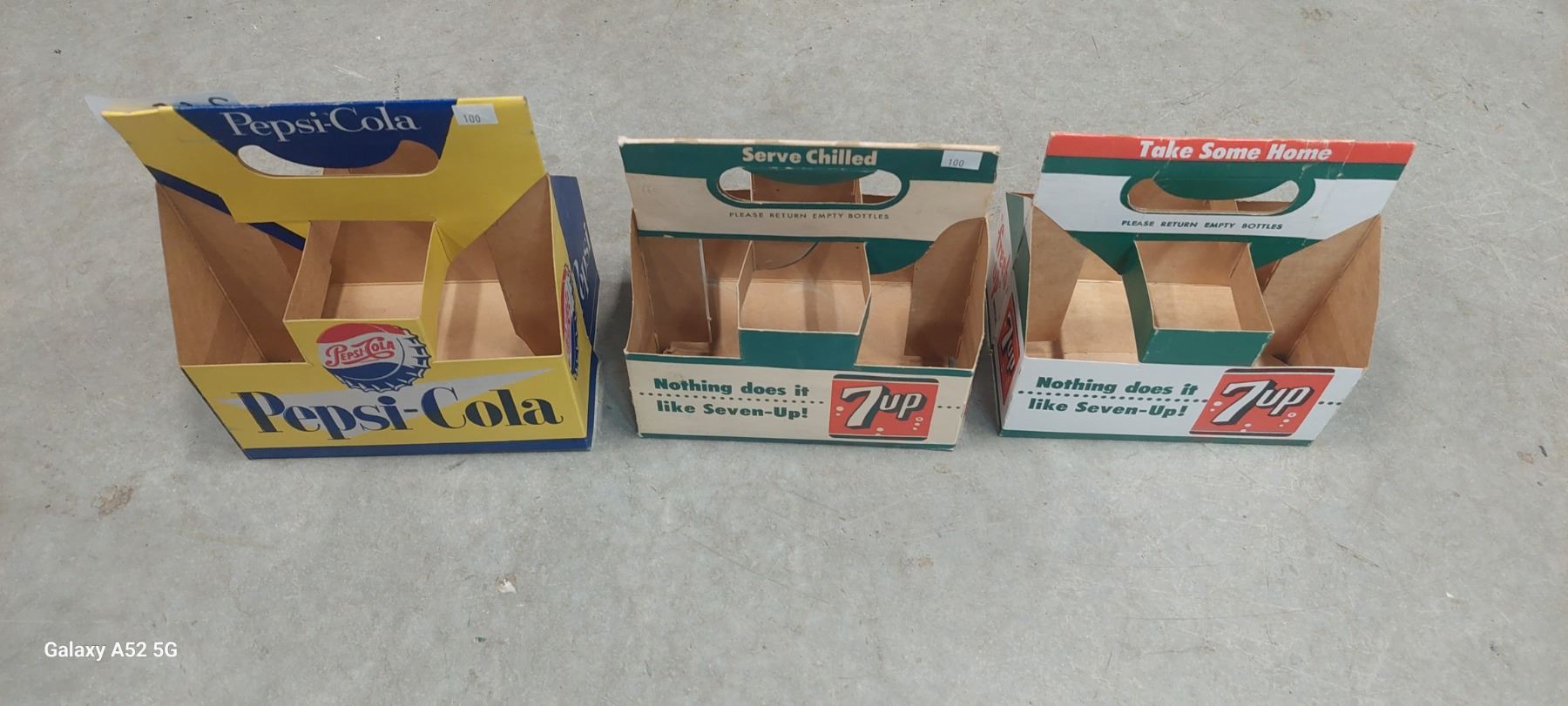 1950s 6 pack pop bottle carriers, 7up & Pepsi