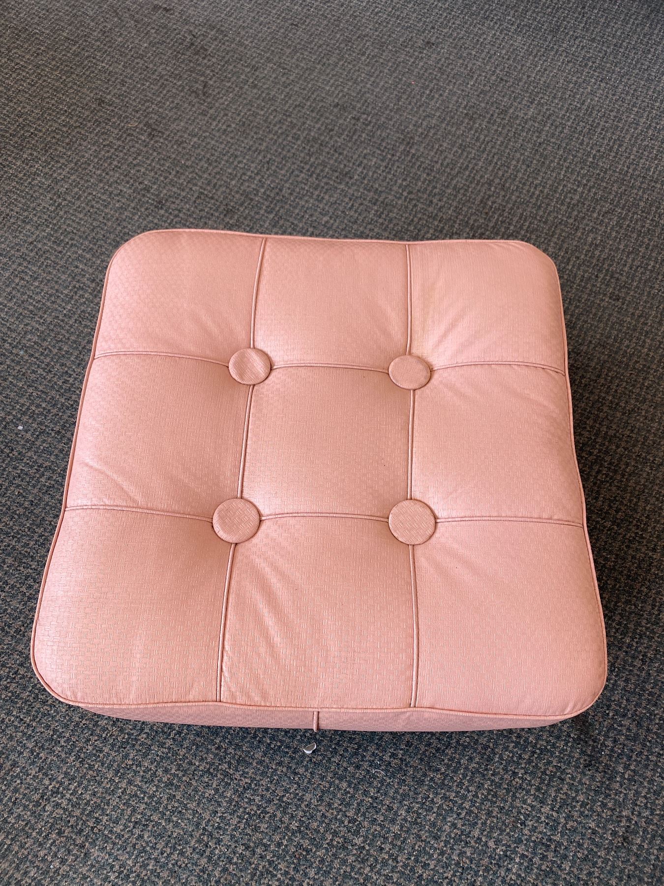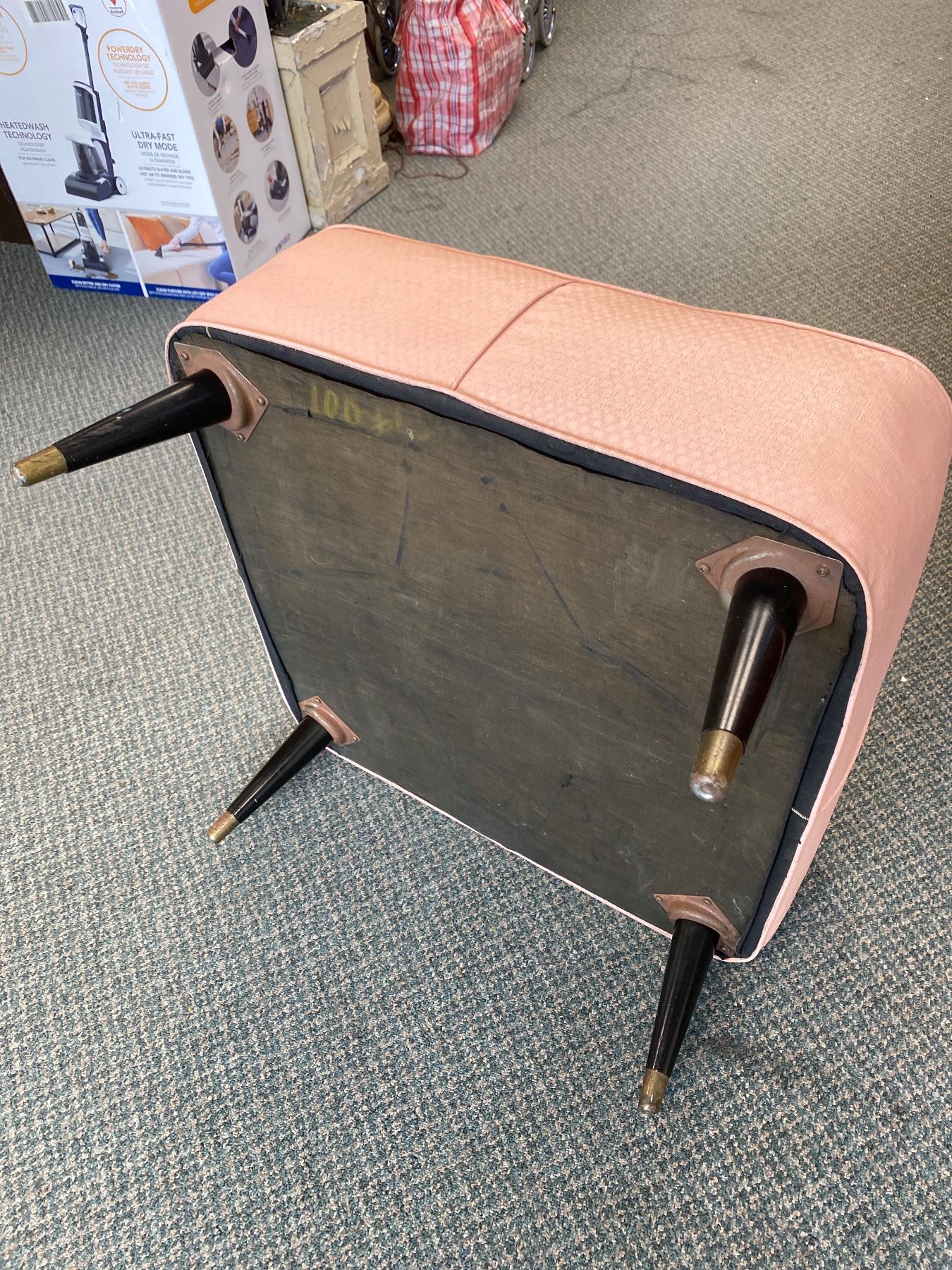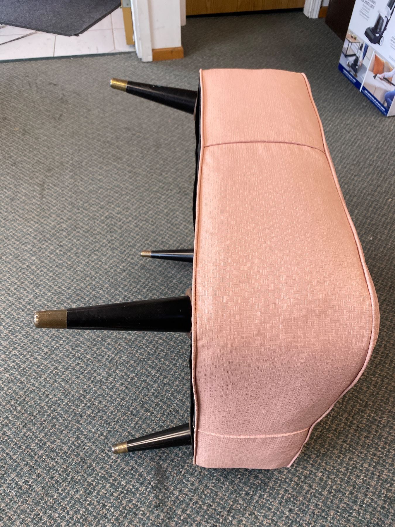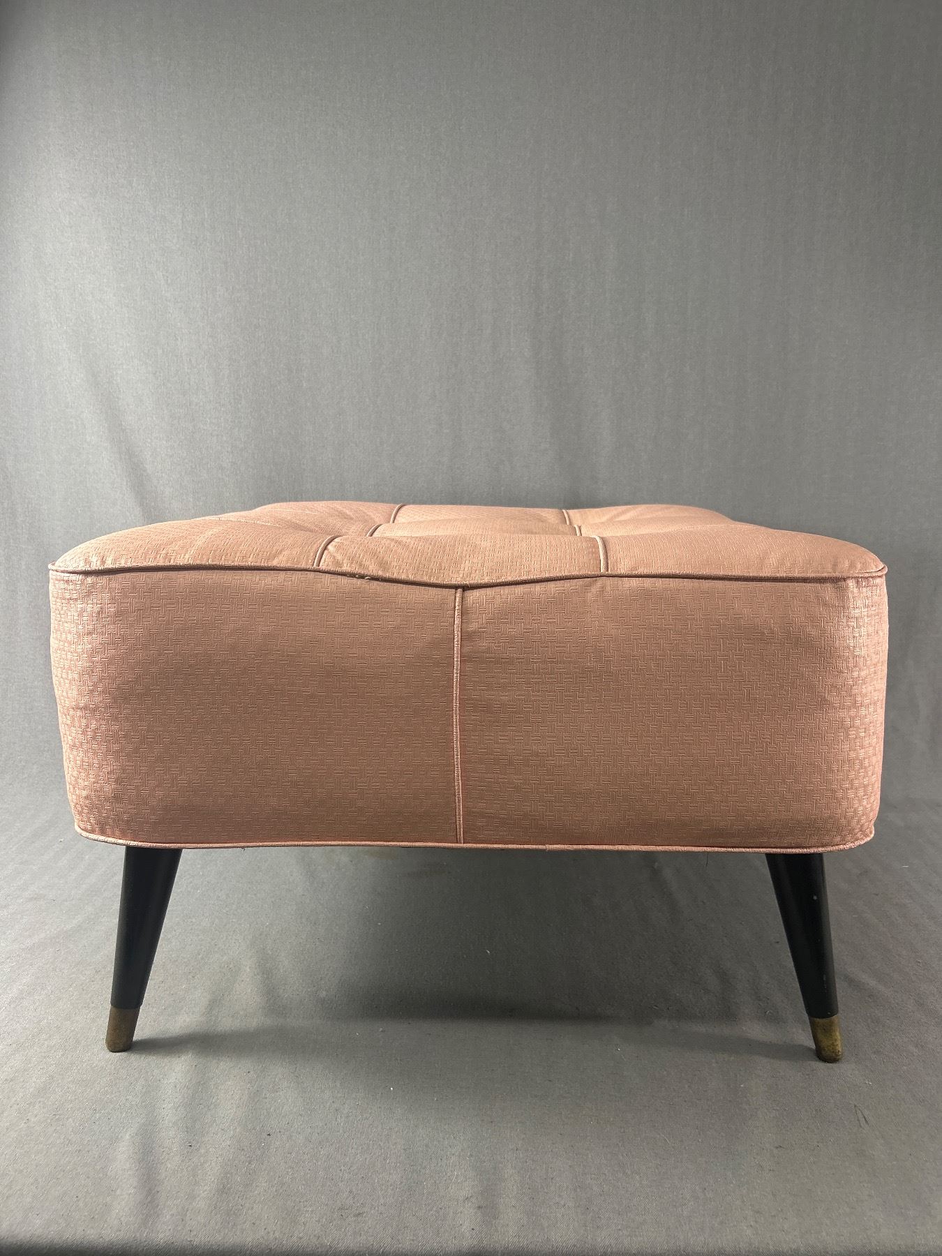 1950s Large Pink Ottoman with Wood Legs All Original in Great Vintage Condition