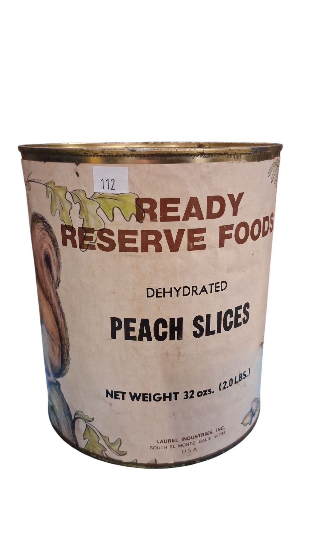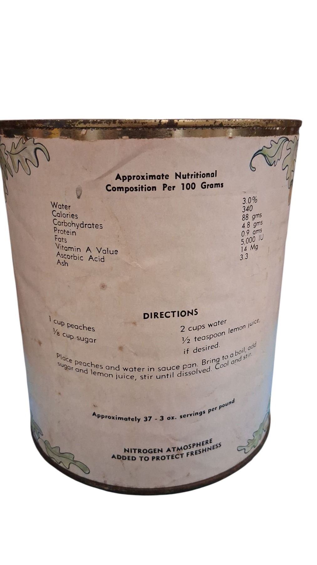 1950s Squirrel Ready Reserves peaches can 1 gallon, paper label, hard to find