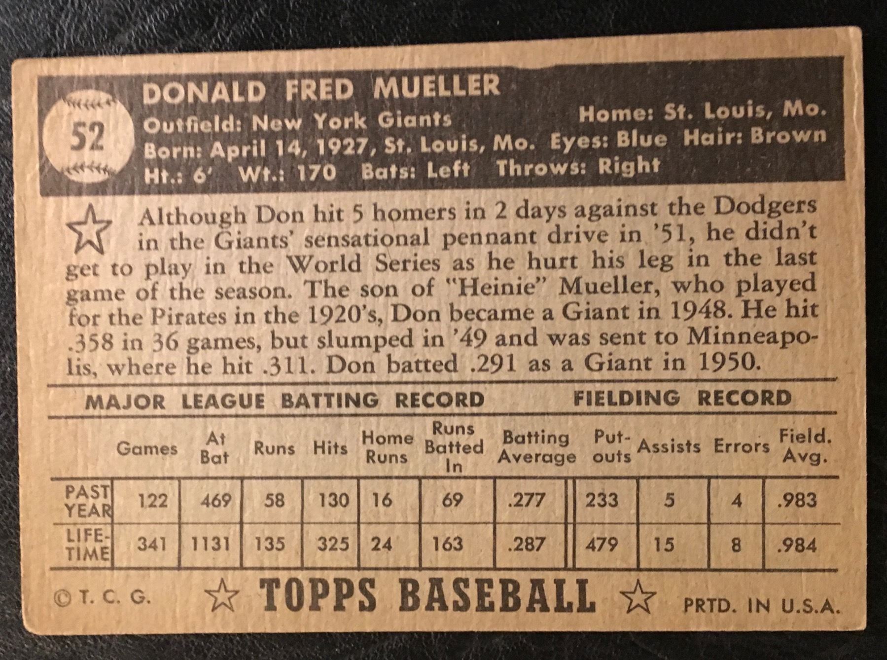 1952 Topps #52 Don Mueller