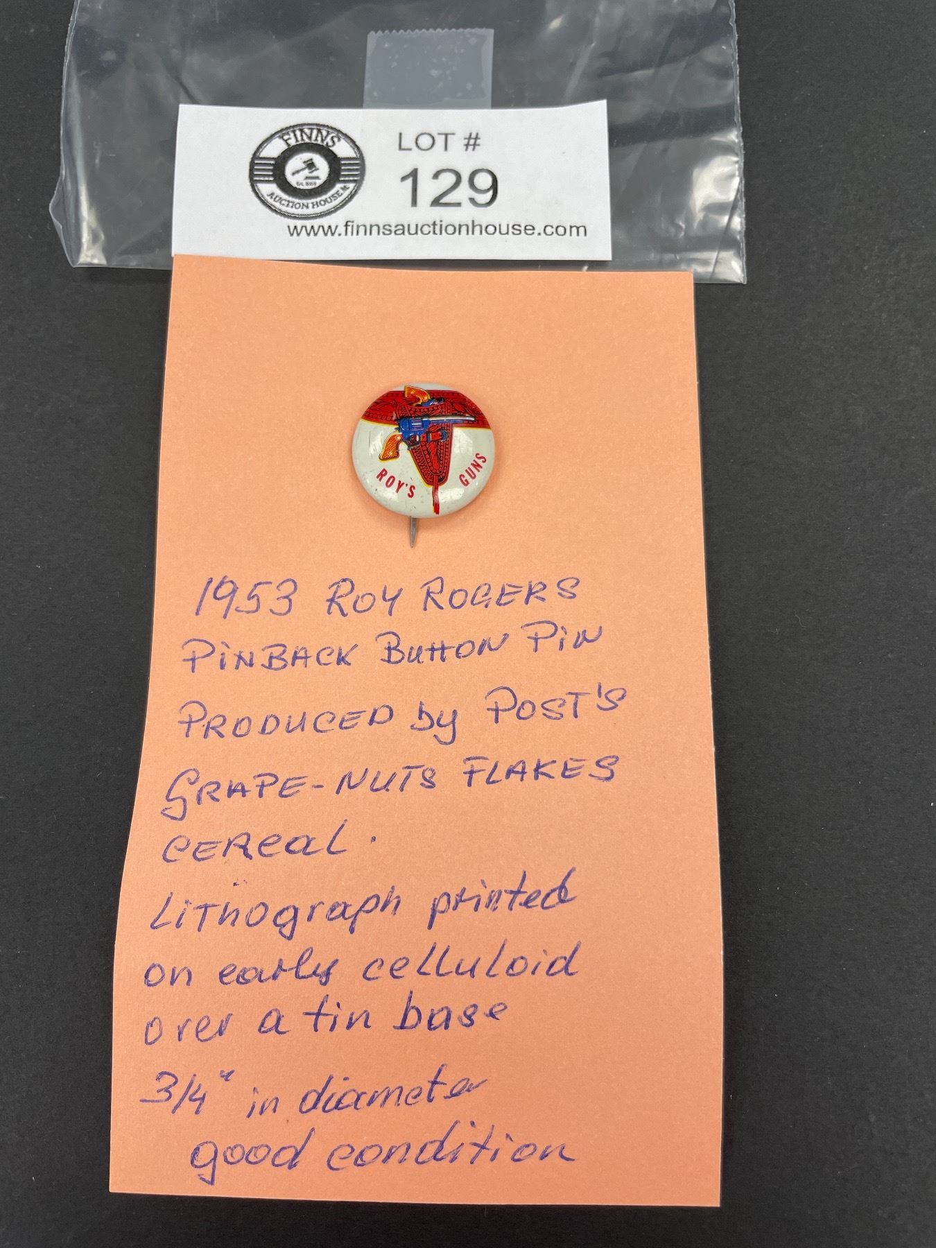 1953 Roy Rogers Pinned Back Button Pin Great Shape